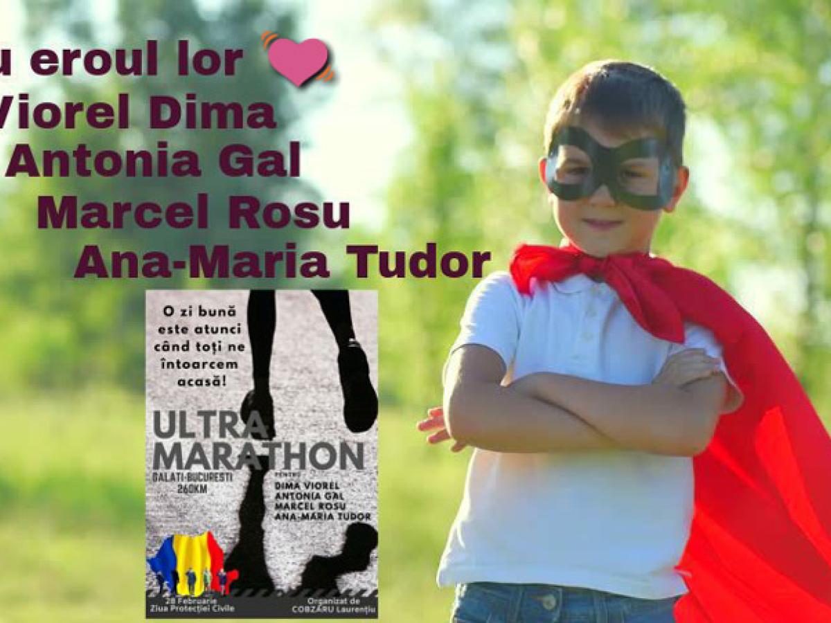 Alergător de cursă lungă şi dornic mereu să îşi ajute semenii, gălăţeanul Laurenţiu Cobzaru se pregăteşte acum pentru o altă operaţiune dedicată pompierului Dima, dar şi altor trei persoane aflate în suferinţă, care au mare nevoie de ajutor. Astfel, pe 28 februarie, de Ziua Protecţiei Civile, Laurenţiu va alerga într-un ultramaraton de 260 kilometri, pe distanţa Galaţi - Bucureşti. Alături de el, va alerga şi Petronela Lungu, de la Inspectoratul General pentru Situaţii de Urgenţă, iar pe tot traseul cei doi vor fi asistaţi de pompierul brăilean Costel Mazalu, care îi va însoţi cu maşina personală.