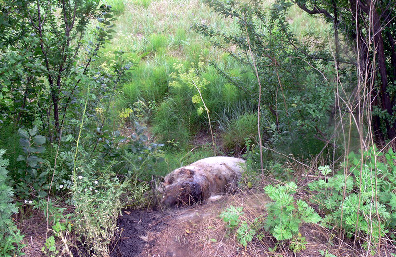 Reamintim că, la sfârşitul săptămânii trecute, câţiva localnici din comuna Unirea s-au panicat după ce au descoperit leşuri de porci pe unul dintre canalele de desecare din apropierea localităţii. Aceştia au sunat la redacţia cotidianului Obiectiv Vocea Brăilei pentru a anunţa situaţia, susţinând că l-au informat şi pe primarul comunei Unirea, Ioan Ungureanu, care însă ar fi spus că nu ştie nimic despre subiect. Un reporter s-a deplasat, vineri, la Unirea şi, pe un canal de desecare care începe din imediata apropiere a zonei panourilor fotovoltaice, a descoperit patru leşuri de porci pe o distanţă de aproximativ 500 m. Animalele erau deja intrate în putrefacţie, iar din unele lipseau anumite porţiuni, semn că în zonă sunt câini maidanezi sau alte carnivore care s-au hrănit din leşuri. Cert este faptul că doi porci erau imenşi, având fiecare peste 250 kg. Iar unul dintre ei avea la ureche o crotalie. Pentru cine trecea prin zona respectivă, aerul era irespirabil, iar priveliştea dezolantă.
