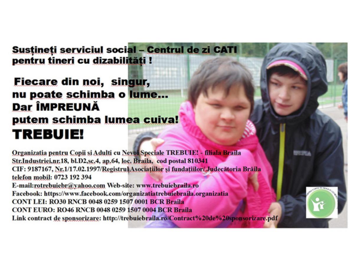 În Vidin, într-un mic centru, există o echipă de oameni minunaţi care fac lucruri extraordinare. Iar pentru a continua să aducă bucurie în viaţa copiilor şi adulţilor cu nevoi speciale, noi, comunitatea, îi putem ajuta. Organizaţia “TREBUIE!” Brăila nu poate supravieţui doar cu banii care vin de la Consiliul Local şi din cotizaţia părinţilor. De aceea, vă invităm să sprijiniţi misiunea ONG-ului prin donaţii în următoarele conturi: