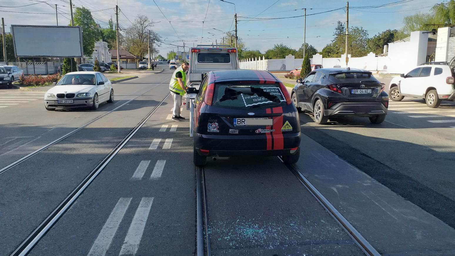 Un autoturism cu luneta spartă, oprit chiar pe linia de tramvai, a încurcat circulația timp de câteva zeci de minute,pe Calea Galați, în zona pod Brăilița, sensul de mers spre Vidin. Nu se știe exact contextul în care mașina a fost lăsată în acea poziție. E posibil ca incidentul să fie legat de răfuielile din lumea interlopă care se derulează de ceva vreme în Brăila. După cum se știe, în urmă cu câteva zile, un brăilean a fost hăcuit efectiv, cu macetele, pe bulevardul Dorobanților. Asta după ce, cu câteva săptămâni înainte, victima fusese implicată într-o reglare de conturi, într-o benzinărie din zona Plantelor.