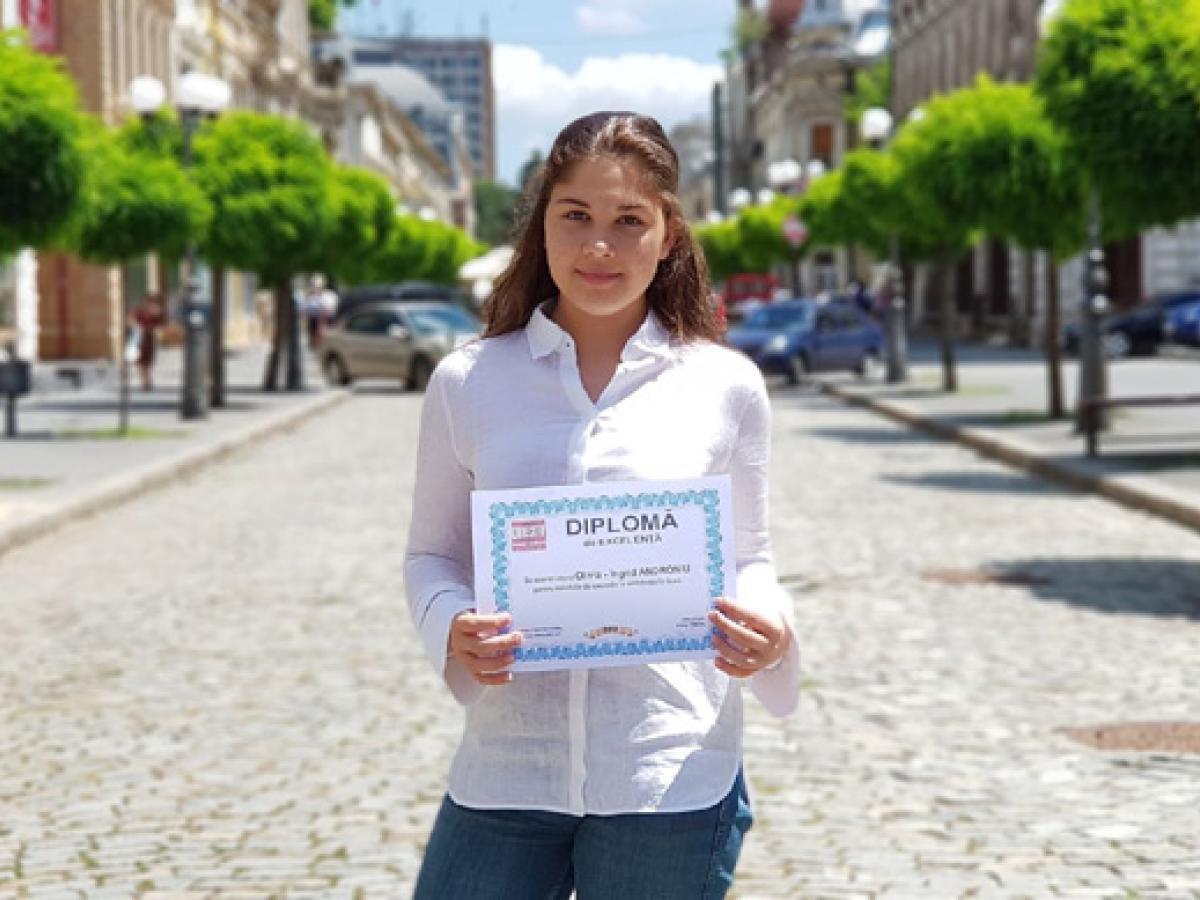 Însă adolescenta nu este doar o elevă de 10 doar la şcoală şi la examenul de Evaluare Naţională. Ea s-a impus şi la olimpiade şi concursuri, cele mai recente premii obţinute fiind locul II la Concursul de Creaţie şi Interpretare “Ana Blandiana” şi locul III la olimpiada judeţeană de română.