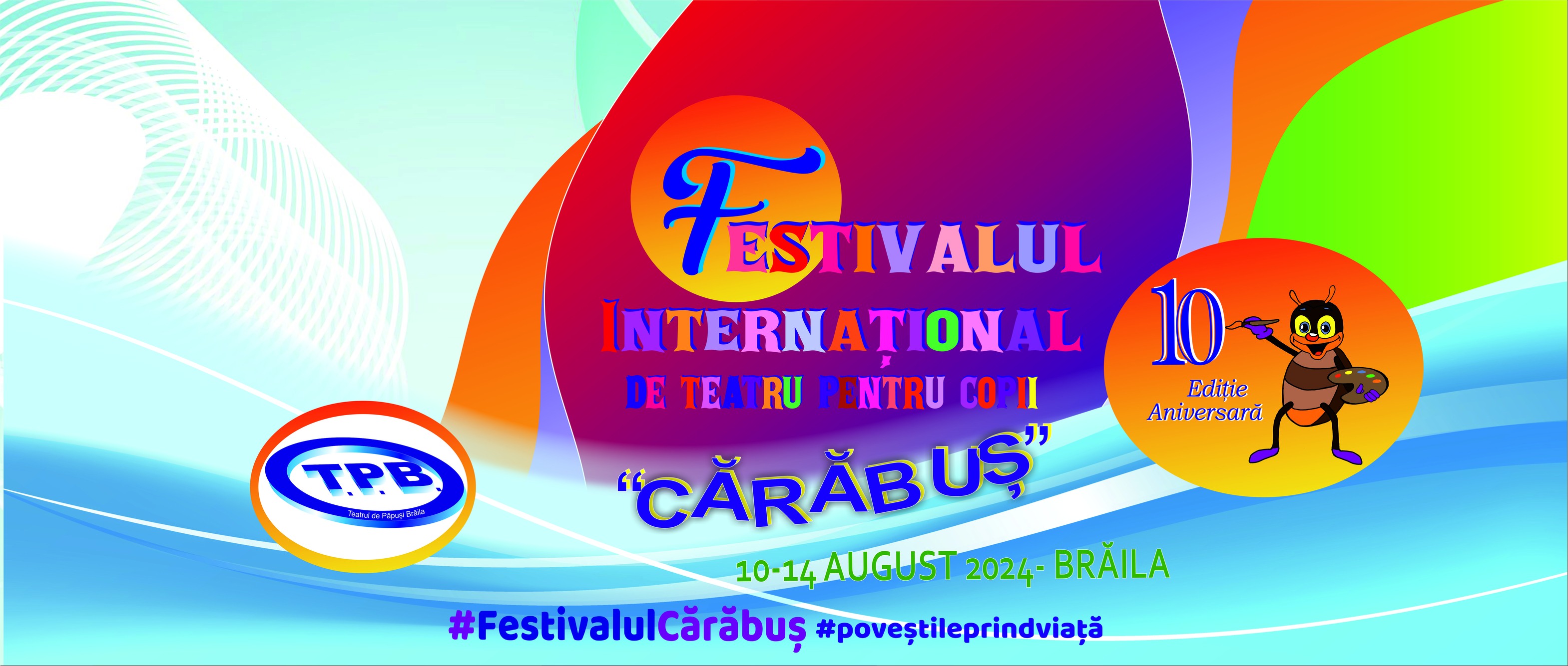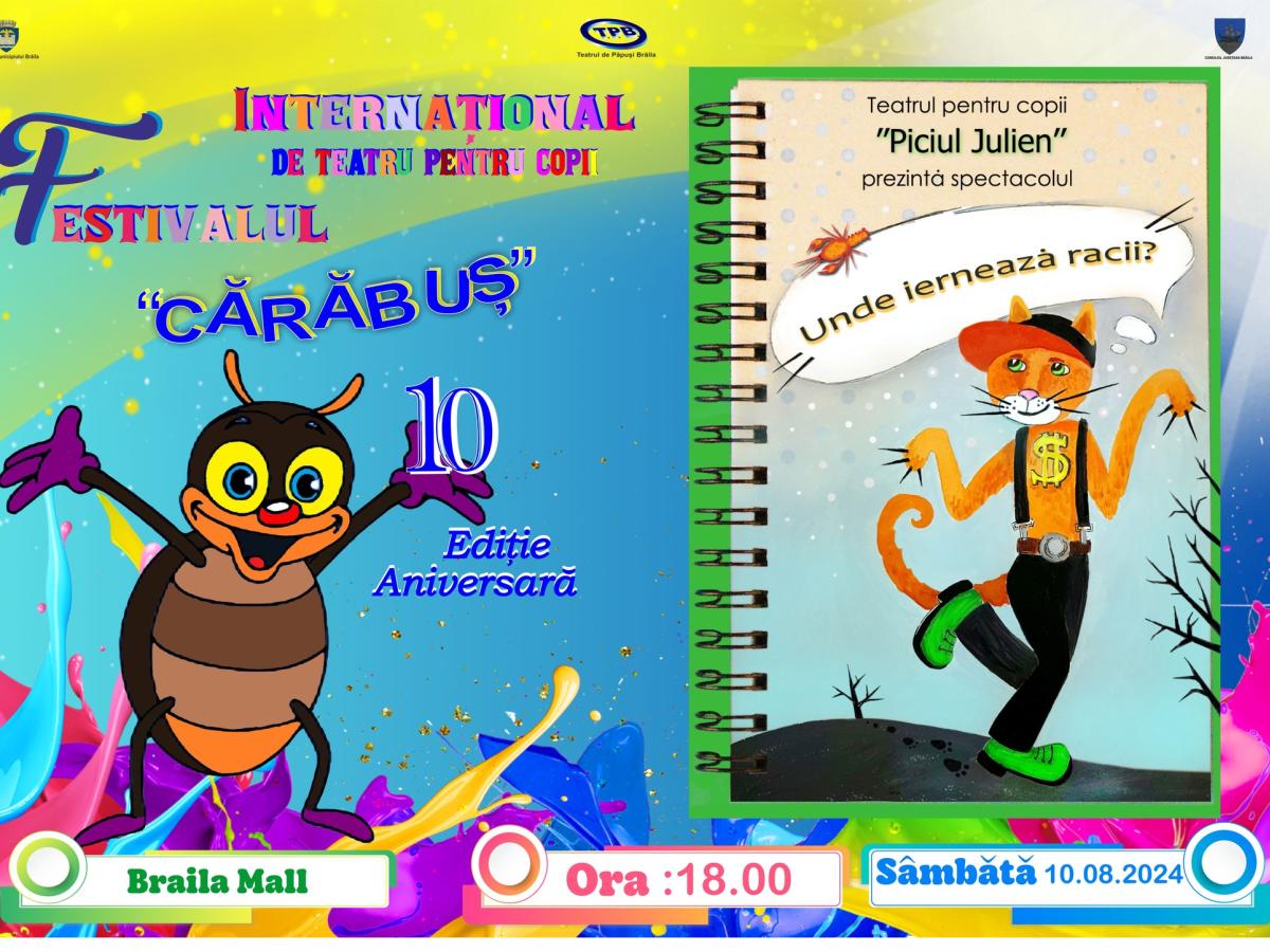Ediţie aniversară pentru Festivalul Internaţional de Teatru pentru Copii „Cărăbuş”! Evenimentul a ajuns anul acesta la a X-a ediţie, iar toţi copiii din Brăila sunt aşteptaţi la sărbătoare! O sărbătoare care va dura cinci zile, în perioada 10-14 august, şi care se va desfăşura în două parcuri din oraş: Parcul Monument (la Rondou) și în Grădina Mare.