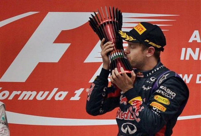 La New Delhi, el a fost urmat de germanul Nico Rosbeg (Mercedes) şi de francezul Romain Grosjean (Lotus-Renault). Al patrulea a trecut linia de sosire brazilianul Felipe Massa (Ferrari), al cincilea a fost mexicanul Sergio Perez (McLaren-Mercedes), iar pe locul şase s-a clasat britanicul Lewis Hamilton (Mercedes).