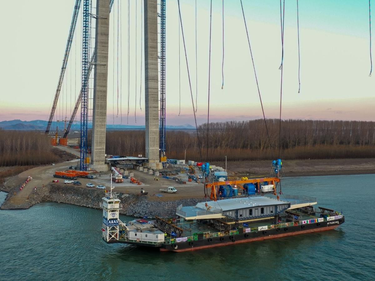 Etapa privind montarea segmentelor de tablier ce vor forma podul suspendat peste Dunăre a întâmpinat ceva greutăți din pricina condițiilor meteorologice nefavorabile, însă constructorul dă asigurări că lucrurile se vor redresa în curând. Deja au fost aduse patru tabliere, două pe malul din Brăila și două pe cel de la Jijila iar un al cincilea segment urmează să ajungă, astăzi (vineri). Încă de dimineață informația a fost făcută publică de către viceprim-ministrul Sorin Grindeanu (ministrul Transporturilor și infrastructurii) pe rețelele de socializare.