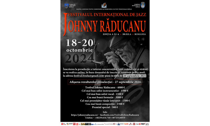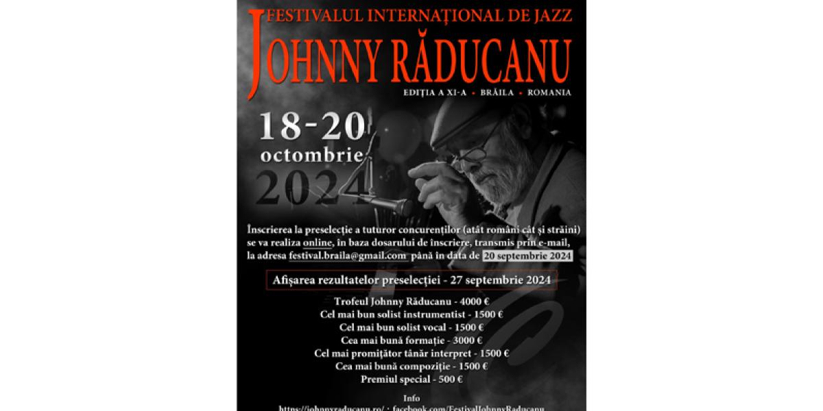 Organizat de Consiliul Județean Brăila, prin Centrul Județean pentru Conservarea și Promovarea Culturii Tradiționale Brăila, Festivalul Internațional de Jazz „Johnny Răducanu” - Ediția XI-a 2024 are loc în perioada 18-20 octombrie 2024, la Casa Tineretului. Organizat „în scopul omagierii ilustrului brăilean Johnny Răducanu, a perpetuării operei sale, a personalității sale artistice distincte”, festivalul urmărește, de asemenea, descoperirea și promovarea noilor talente interpretative. Pe toată durata festivalului au loc recitaluri de jazz prin care tinerii concurenți și publicul vin în contact cu nume consacrate ale genului. Festivalul se desfășoară pe două secțiuni: concurs și recitaluri susținute de artiști prestigioși ai genului.