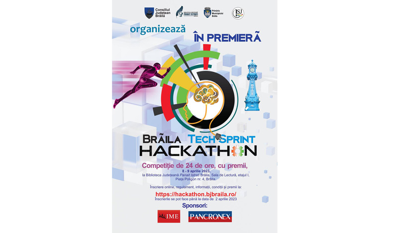 În perioada 8-9 aprilie 2023 se va desfășura “Brăila Tech Sprint”, primul Hackathon local, organizat de Biblioteca Județeană “Panait Istrati” Brăila, Consiliul Județean Brăila, Primăria Brăila și Inspectoratul Școlar Județean Brăila.
