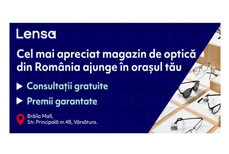 Începând de mâine, 3 martie 2022, Lensa, cel mai apreciat magazin de optică din România, deschide primul său showroom din Brăila. Inaugurarea magazinului din Brăila este o noutate pentru companie, acesta fiind primul showroom Lensa deschis într-un mall din România.