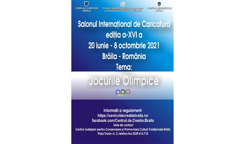 * concursul se adresează caricaturiștilor amatori și profesioniști, iar tema ediției de anul acesta este "Jocurile olimpice" * doritorii pot trimite trei lucrări în format digital și o scurtă prezentare a activității artistice până pe data de 8 septembrie a.c.