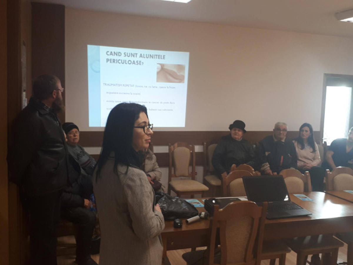 • dr. Virginia Kaperoni şi dr. Raluca Arhire au susţinut un seminar despre prevenţia bolilor din sfera dermatologiei şi ORL • au fost prezenţi în jur de 30 de pensionari, care s-au arătat foarte interesaţi de informaţiile prezentate de cei doi medici ai clinicii private