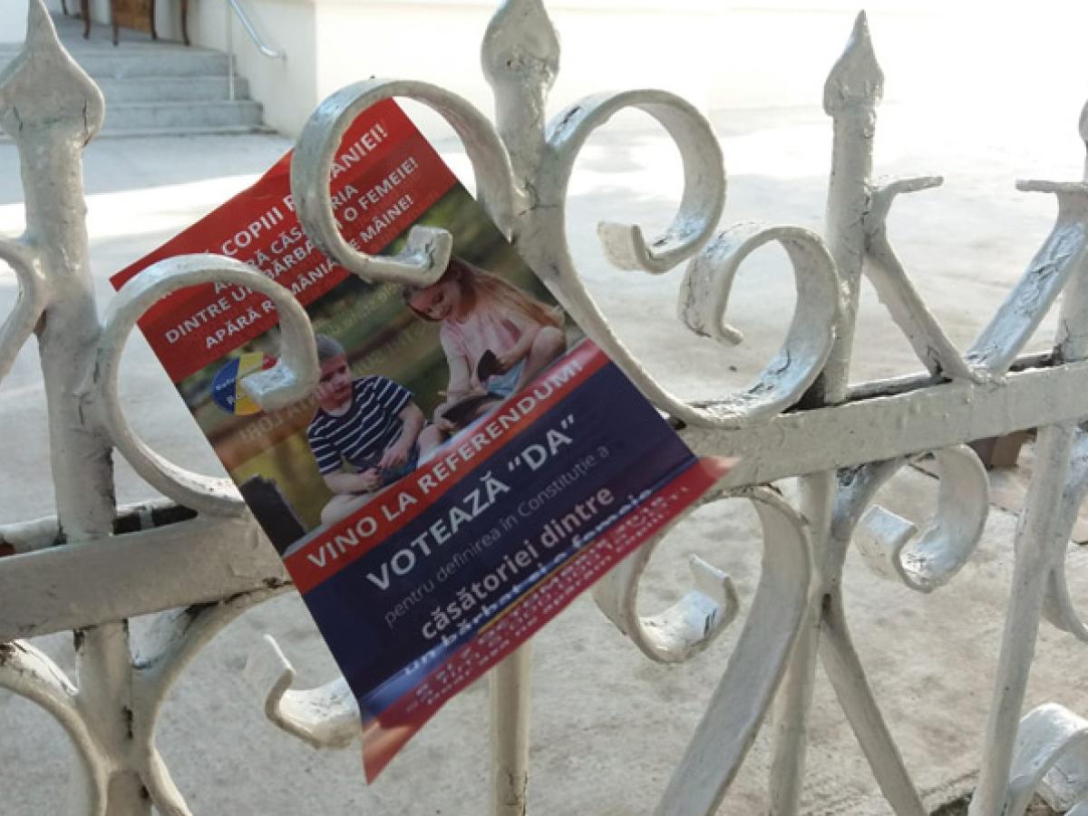 La data de 29 septembrie, ora 17.15, poliţiştii au primit o sesizare scrisă de la Biroul Electoral Judeţean Brăila, cu privire la faptul că există un banner de campanie electorală amplasat pe strada Şcolilor, în zona Bisericii “Sfinţii Împăraţi Constantin şi Elena”. Lucrători din cadrul Poliţiei Municipiului Brăila - Biroul Ordine Publică s-au deplasat la faţa locului şi au constatat că pe bolta bisericii, chiar deasupra uşii de acces în lăcaşul de cult, se afla un banner pro referendum, cu mărimea de 3 metri/0,70 metri. Mesajul transmis era unul concludent: “Apără copiii României şi căsătoria dintre un bărbat şi o femeie. Vino la Referendum!”