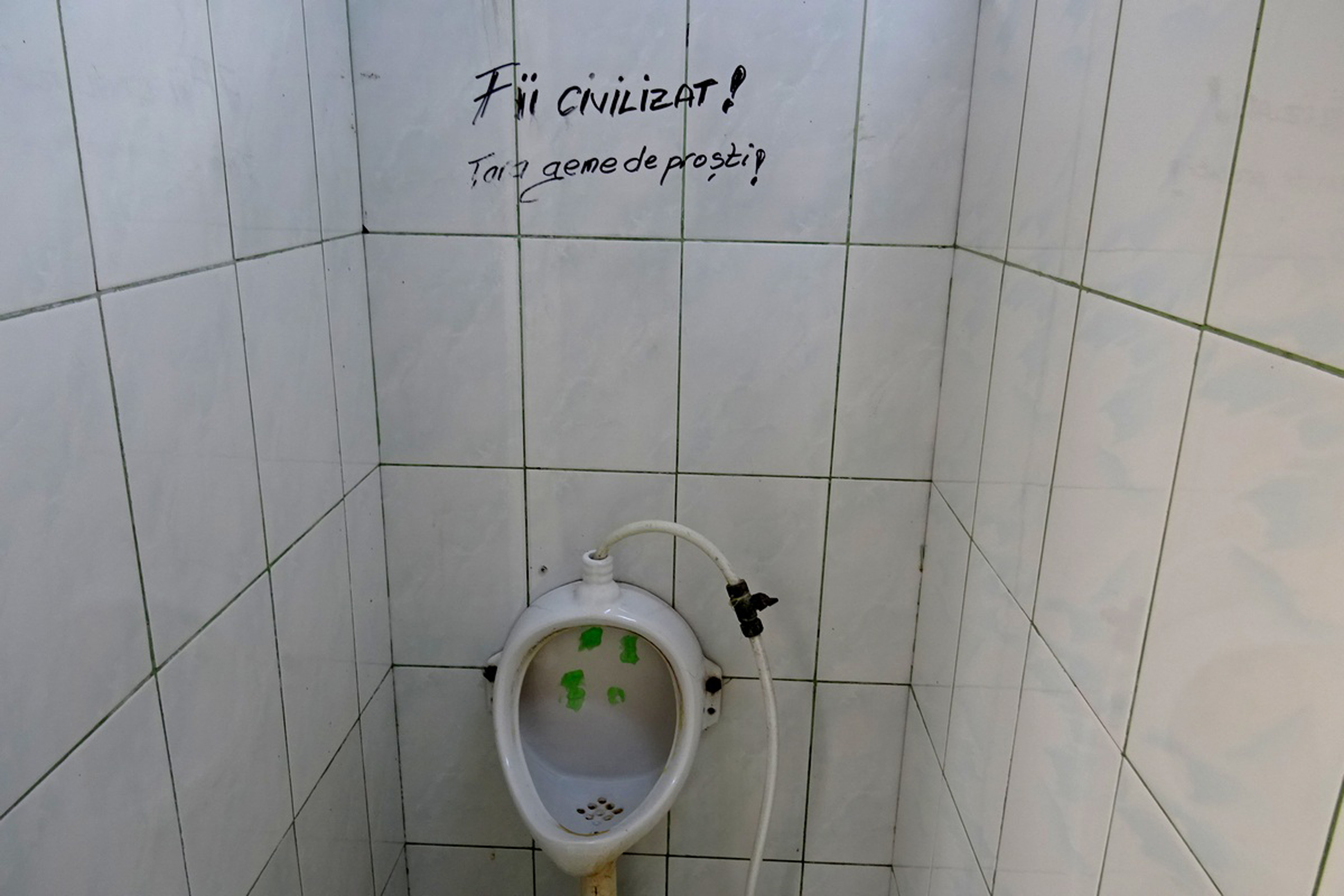 În Grădina Mare, uşile toaletei publice de lângă intrarea în parc sunt deschise în permanenţă, din simplul motiv că nu mai au niciun sistem de închidere funcţional. Înăuntru, este cât de cât curat, dovadă că toaletele nu sunt lăsate chiar de izbelişte de firma care a închiriat spaţiul pus la dispoziţie de Primărie. Din câte se pare, administratorul acestei toalete publice a avut ceva probleme cu comportamentul necivilizat al unora dintre utilizatori, care fie au vandalizat obiectele sanitare, fie şi-au făcut nevoile fiziologice pe lângă vasele de toaletă. “Fii civilizat! / Ţara geme de proşti!”, este un mesaj scris cu carioca deasupra pisoarului de la cabina bărbaţilor, probabil în încercarea administratorului de a mai tempera pornirile mârlăneşti ale unora dintre “clienţii” toaletei publice.