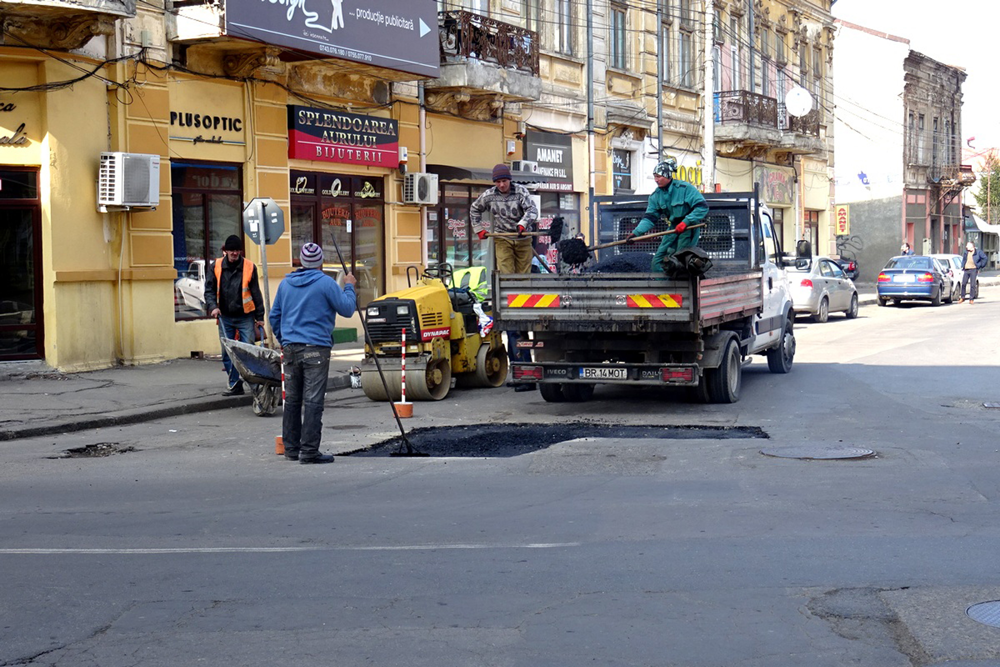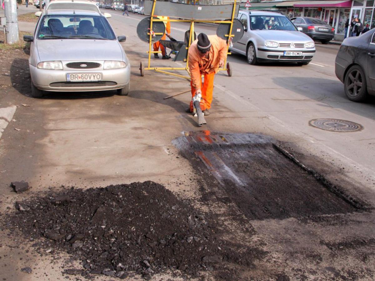 Sunt deja câteva săptămâni de când pe străzile oraşului nu se mai astupă nicio groapă, în ciuda faptului că brăilenii sunt tot mai vehemenţi la adresa Primăriei, şi mai ales a primarului Marian Dragomir, socotit principalul vinovat de starea carosabilului. Încetarea lucrărilor de plombări sau turnare de covor asfaltic - şi nu ne referim aici la şantierul de pe Calea Galaţi, care face obiectul unei investiţii separate - are, totuşi, o explicaţie simplă: contractul semnat la începutul anului de Primărie cu firma gălăţeană “Cricons” SRL, pentru reparaţiile stradale de pe raza municipiului, s-a epuizat. Mai exact, s-au epuizat suprafeţele prevăzute în contract. Astfel, Primăria a contractat, contra sumei de 2.396.587 lei, turnarea de asfalt pe 25.503 metri pătraţi de carosabil şi pe 5.937 mp de trotuare şi alei pietonale. De asemenea, contractul mai prevedea montarea de 3.437 metri liniari de borduri, plus 2.500 metri liniari pentru situaţiile neprevăzute, cum ar fi surpările unor sectoare de stradă. În fine, au mai făcut obiectul contractului reparaţiile efectuate pe o suprafaţă de 2.812 mp de drumuri împietruite şi repararea a 937 mp de pavaje.