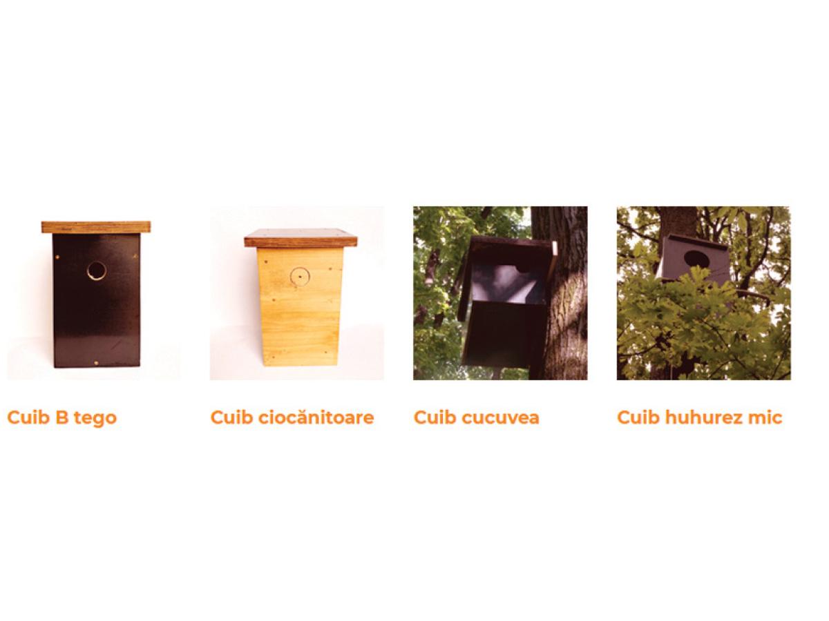 4. În lipsa copacilor bătrâni, mai ales în localități (parcuri, grădini, spații verzi, livezi) putem suplimenta locurile de cuibărit pentru pițigoi, muscari, țicleni, grauri, pupeze, ciuși, muscari gulerați, măcăleandru, codroși de pădure.