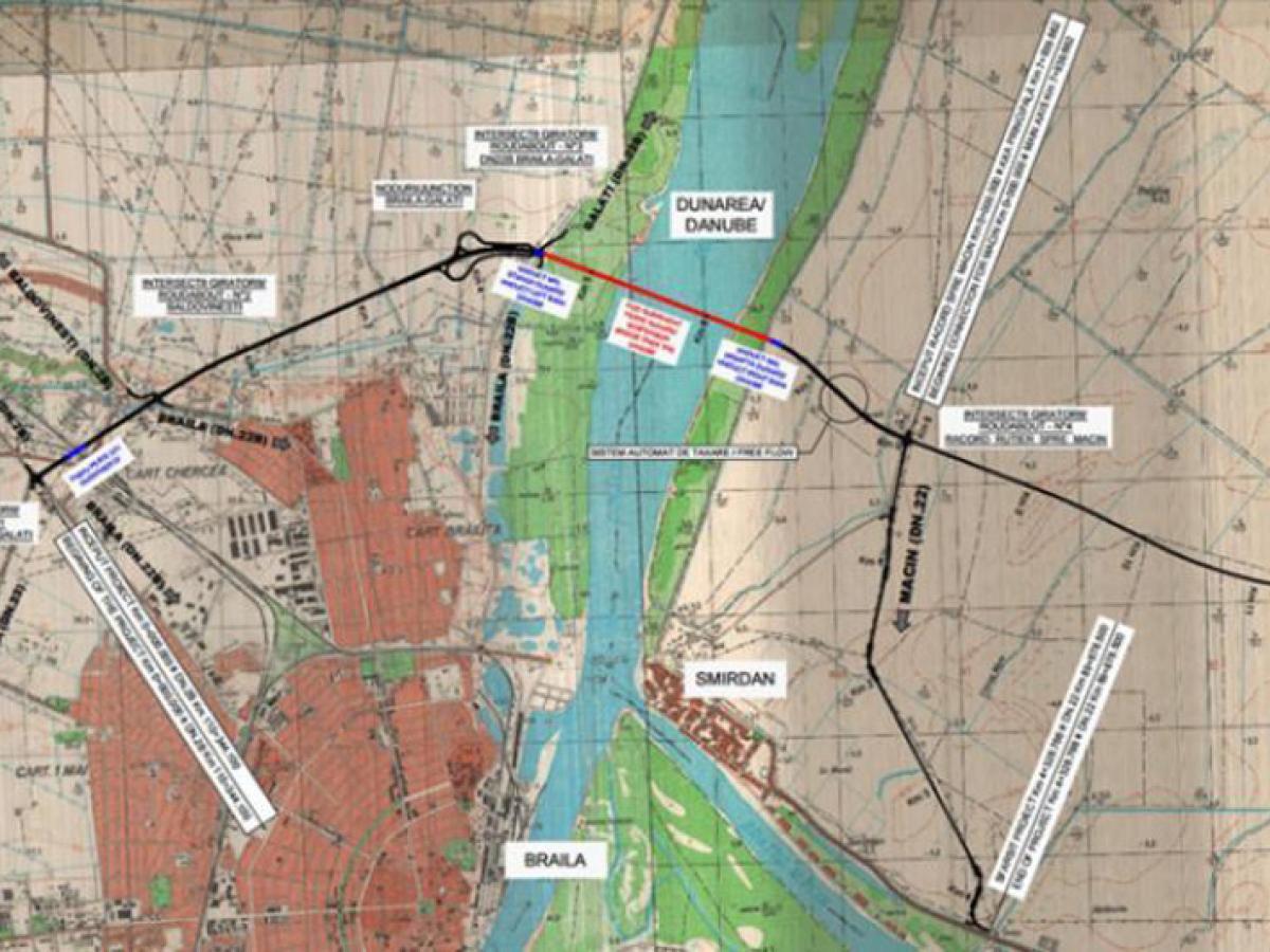 Reamintim că în data de 19 ianuarie, Compania Naţională de Administrare a Infrastructurii Rutiere a semnat contractul de “Proiectare şi Execuţie Pod Suspendat peste Dunăre in Zona Brăila” cu Asocierea “ASTALDI S.p.A. – IHI INFRASTRUCTURE SYSTEM CO., L.T.D”, parte din Strategia privind realizarea, dezvoltarea şi modernizarea reţelei de transport de interes naţional şi european, pentru suma de 1,995 miliarde lei, fără TVA. Mai detaliat, licitaţia s-a finalizat cu atribuirea contractului pentru suma de 1.995.932.260,25 lei, fără TVA, adică echivalentul a circa 433 milioane euro, faţă de o valoare estimată de la care s-a pornit licitaţia, de 2,025 miliarde lei, fără TVA, (aproximativ 450 milioane euro). De aceşti bani, asocierea declarată câştigătoare va trebui să proiecteze şi să construiască, în linii mari, podul suspendat, care, de altfel, reprezintă principala structură a proiectului, plus două viaducte a câte 110 metri lungime, un drum principal cu o lungime de aproape 19,1 km şi un drum de legătură cu DN22 (Smârdan-Măcin), în lungime de 4,328 km. Durata contractului este de 4 ani, din care un an pentru proiectare şi restul de 3 pentru execuţie. Mai trebuie adăugat că perioada de garanţie a lucrărilor va fi de 10 ani.