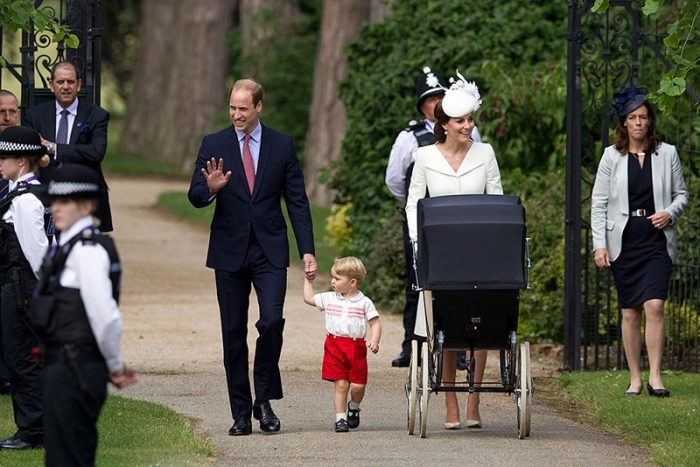 Ducele şi ducesa de Cambridge au mers duminică spre biserica din Sandringham, Norfolk alături de prinţul George, dus de mânuţă sau purtat în braţe de tatăl său, în timp ce mama împingea căruciorul vintage în care se afla prinţesa Charlotte, pentru botezul princiar, relatează agerpres.ro.