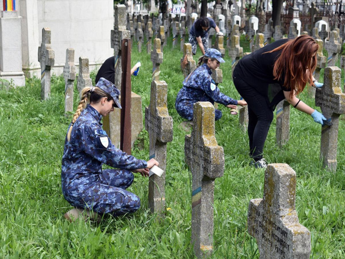 După cum v-am mai informat, la inițiativa comenzii Garnizoanei Brăila și cu sprijinul prefectului Brăilei, Iulian Timofei, s-a decis reabilitarea benzilor tricolore aplicate pe cruci și pe însemnele de căpătâi aflate în Cimitirul Eroilor de la „Sf. Constantin”. 20 de elevi de la Liceul de Arte „Hariclea Darclee” (clasa a IX-a B și a XI-a B - grupele de ceramică și modă), sub îndrumarea prof. Ioana Grigore, Raluca Iancu și Lucian Constantin, împreună cu militari din cadrul Garnizoanei Brăila, au vopsit tricolorul pe aproximativ 500 de cruci aflate în Cimitirul Eroilor, în zilele de 16 și 19 mai a.c.