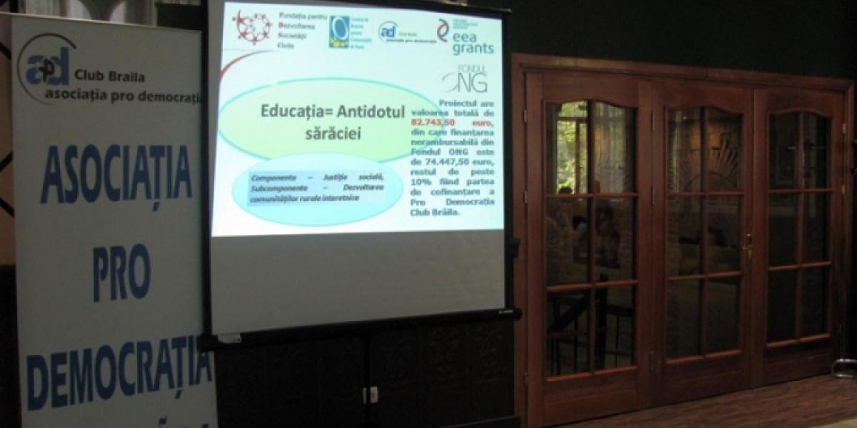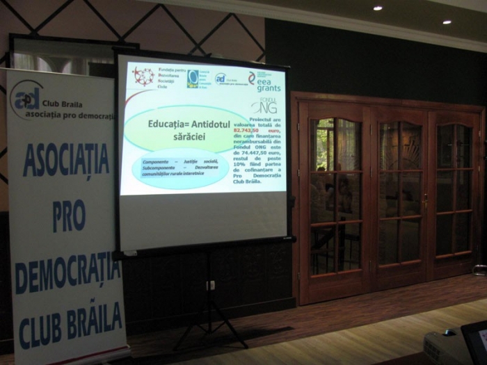 Ieri, a fost lansat proiectul „Educaţia - Antidotul sărăciei", implementat de Asociaţia Pro Democraţia Club Brăila, pe durata a 10 luni, cu începere din aprilie 2015, proiect finanţat prin granturile SEE 2009 - 2014, în cadrul Fondului ONG în România, Componenta - Justiţie socială, Subcomponenta - Dezvoltarea comunităţilor rurale interetnice. Proiectul se adresează comunităţilor rurale multietnice din comunele brăilene Unirea, Viziru, Şuţeşti. Valoarea totală a acestuia este de 82.743,50 euro, din care finanţarea nerambursabilă din Fondul ONG este de 74.447,50 euro, restul de peste 10% fiind partea de cofinanţare a Pro Democraţia Club Braila.