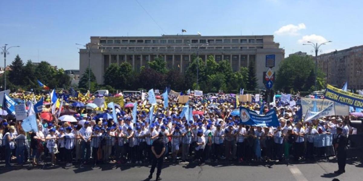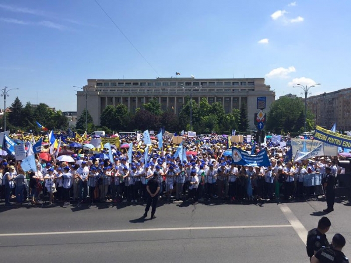 Protest de amploare al sindicalistilor din învăţământ. Mii de oameni s-au adunat ieri în Piaţa Victoriei şi au mărşăluit până la Palatul Cotroceni. Dascălii cer, printre altele, o lege a salarizării echitabilă.