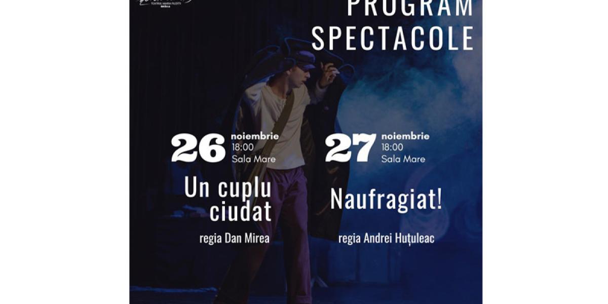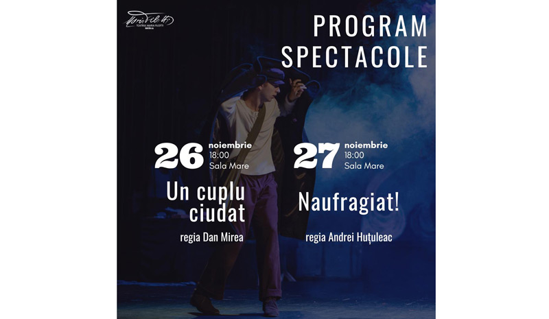 • “Un cuplu ciudat” se joacă sâmbătă, 26 noiembrie, iar “Naufragiat” este programat duminică, 27 noiembrie