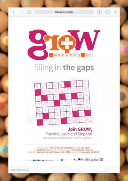 Sâmbătă, 9 ianuarie 2016, de la ora 13.00, la Biblioteca Judeţeană „Panait Istrati" Brăila, Sala "Fănuş Neagu", se va derula o nouă sesiune a Proiectului „Grow".