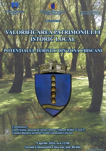 Marţi, 5 aprilie, de la ora 12, secţia „Istorie" a Muzeului Brăilei „Carol I" şi Şcoala Gimnazială Chiscani organizează proiectul educaţional „Valorificarea Patrimoniului Istoric Local. Potenţialul turistic din zona Chiscani".