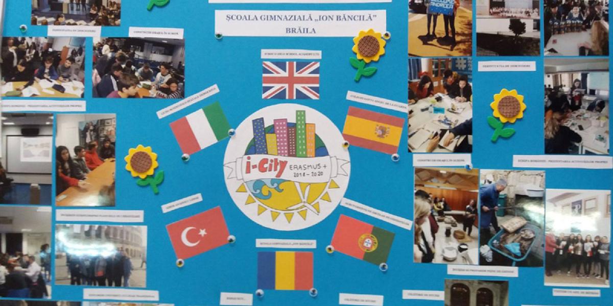 Data de 31 august 2020 aduce cu sine un final de succes al proiectului Erasmus+ „iCity” (număr de referinţă 2018-1-UK01-KA229-048124_5, Acţiunea Cheie 2: Proiecte de parteneriat strategic: Proiecte de schimb interşcolar), derulat de Şcoala Gimnazială „Ion Băncilă” începând cu 1 septembrie 2018. Principalele trei subiecte vizate de proiectul Erasmus+ “iCity” au fost: TIC (noi tehnologii - competeţe digitale), schimbări de mediu şi de climă şi educaţie antreprenorială. Şcolile implicate în proiect au fost Stroud High School Academy Ltd, Stroud, Regatul Unit (şcoala coordonatoare); Liceo Scientifico Statale Democrito, Roma, Italia; Colegio Santo Angel de la Guarda, Badajoz, Spania; Izmir Anadolu Lisesi, Izmir, Turcia; Şcoala Gimnazială “Ion Băncilă”, Brăila, România şi Agrupamento de Escolas de Gondifelos, Vila Nova de Famalicao, Portugalia.