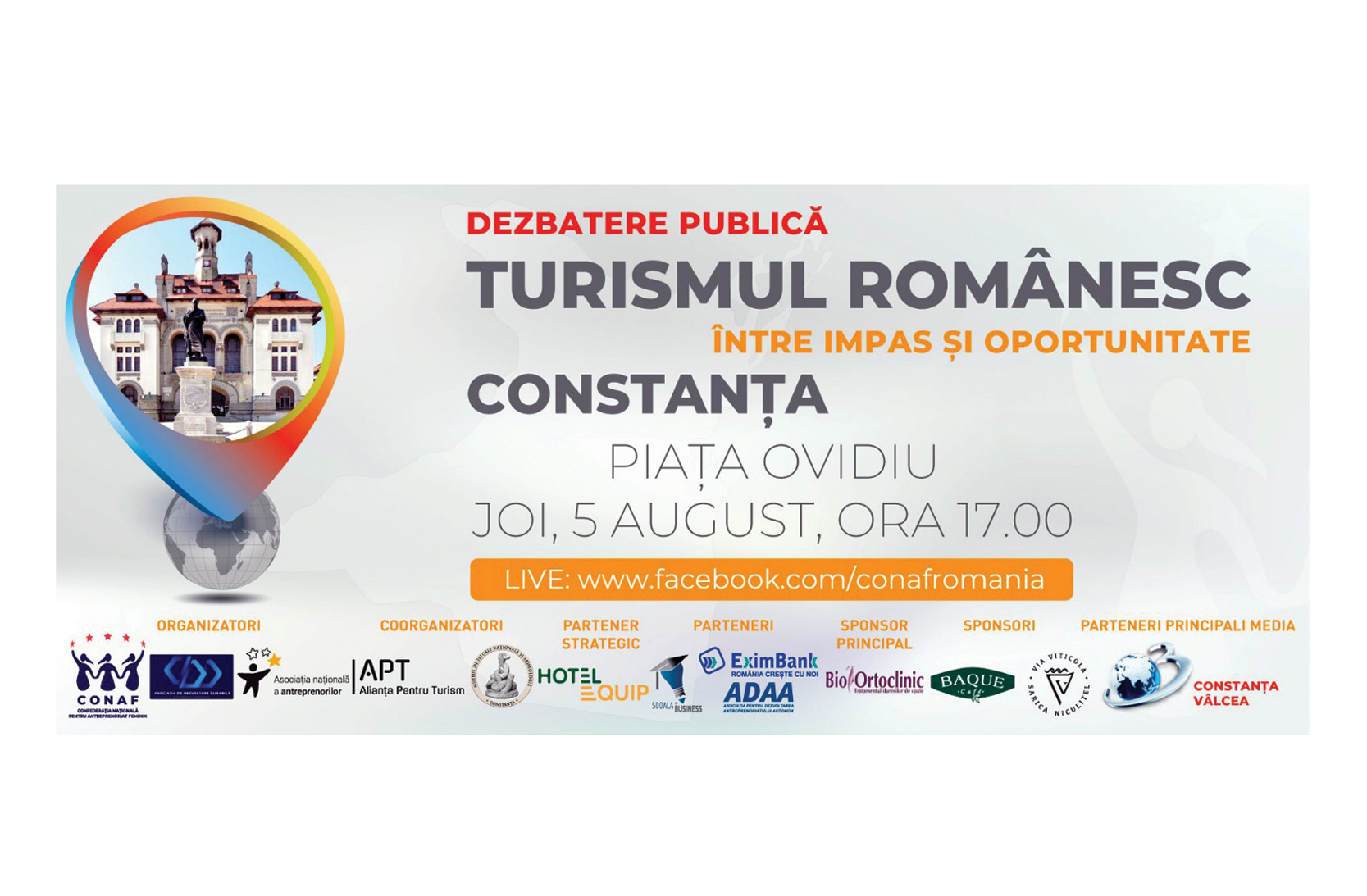Evenimentul va fi transmis live, integral, pe Antena 3 Constanța, cărora le mulțumim pentru parteneriat, precum și pe contul de Facebook al CONAF: https://www.facebook.com/conafromania.