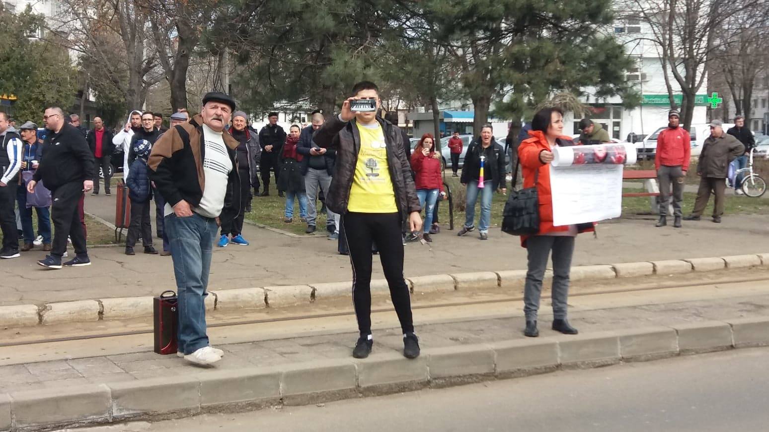 ȘTIRE INIȚIALĂ: Câteva zeci de brăileni, protestatari anti-Dragnea, s-au adunat în această dimineață în fața fostului Club Progresul, unde se desfășoară ședința în care pesediștii brăileni își aleg noul președinte de filială. Oamenii au venit în speranța că îi vor putea spune în față liderului PSD, Liviu Dragnea, ceea ce cred despre el și despre felul cum conduce țara. Planurile le-au fost încurcate, însă, de lipsa lui Dragnea care, după cum se știe, acuză probleme de sănătate și și-a anulat vizita la Brăila. Chiar și așa, protestatarii au scandat diverse lozinci, au fluturat cătușe pentru a arăta cât mai concret cât de mult își doresc ca Dragnea să ajungă la pușcărie pentru faptele sale, și au pus la o boxă mobilă câteva melodii anti-PSD.