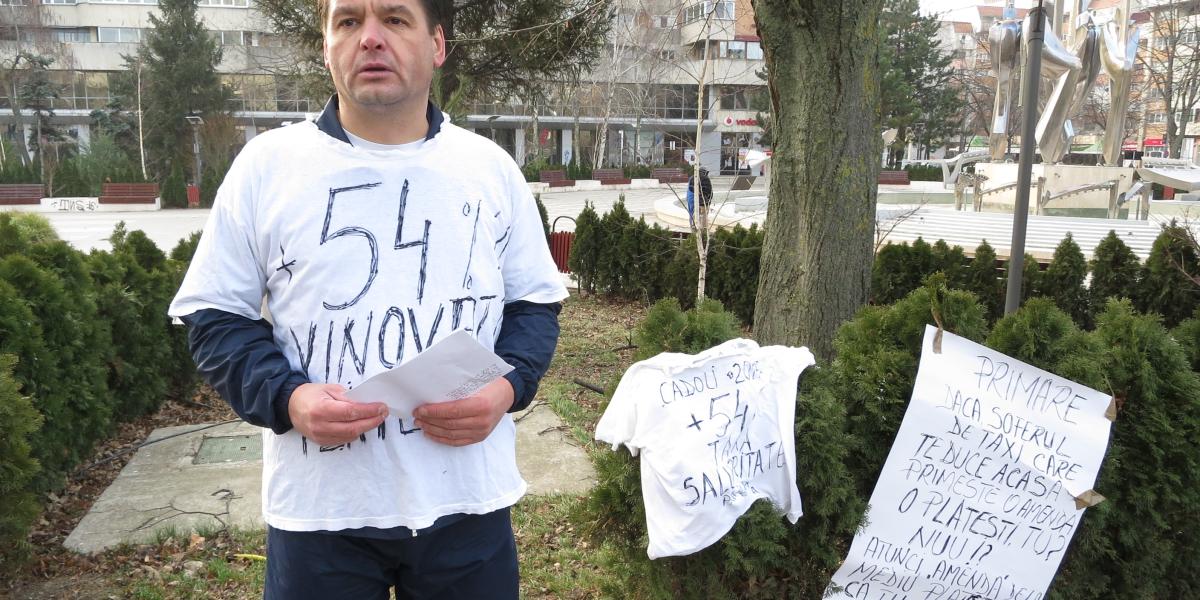 Brăileanul este de părere că vinovate pentru această amendă se fac firmele de salubritate care nu și-au făcut treaba, precum și șefii administrației locale care nu le-au atras atenția. Omul aleargă în cerc, pe drumul care permite accesul mașinilor în parcarea de la Primărie și încearcă să atragă atenția cu un fluier. Și-a adus două pancarte pentru a-și expune mesajul și poartă un tricou alb prin care, de asemenea, își arată nemulțumirea vizavi de majorarea taxei pentru gunoi.