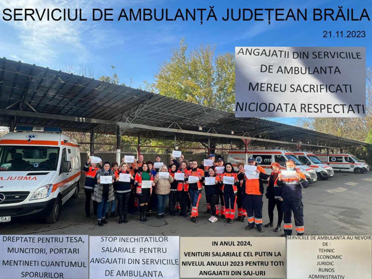 Angajații de la Serviciul de Ambulanță Județean Brăila au dat startul protestelor, pentru acordarea drepturilor legale cuvenite. Liderul sindical de la SAJ Brăila, Dragomir Valentin – asistent medical, este în greva foamei la București, alături de alți patru reprezentanți din țară.