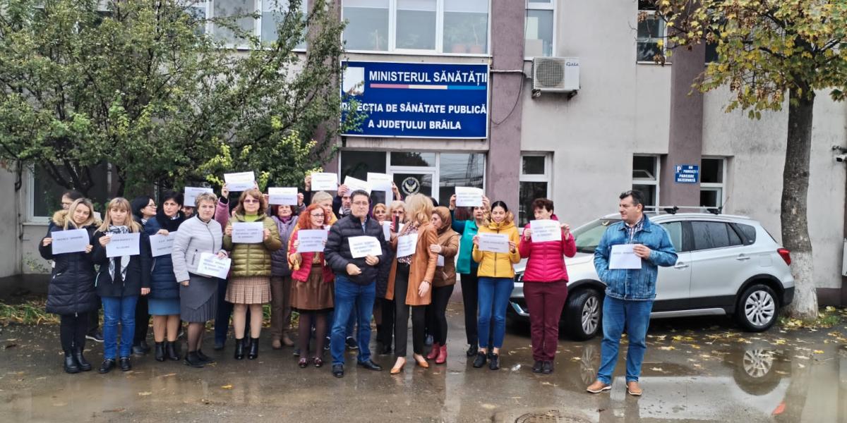 * pe modelul protestelor din Casele de Asigurări de Sănătate, dar și din Finanțe, care s-au încheiat cu decizii favorabile, iată că și angajații din Direcțiile de Sănătate Publică din România, printre care și cea de la Brăila, au decis, astăzi, să-și ceară drepturile în afara birourilor * în cazul lor, nemulțumirile sunt, în mare parte, de ordin salarial din cauza discrepanțelor din sistem, dar este semnalat și un deficit mare de personal