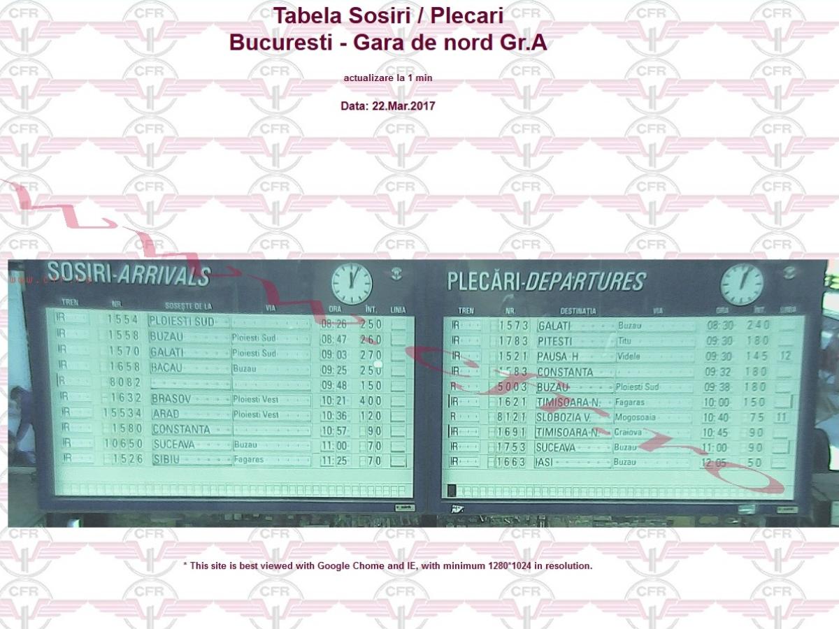 La această oră trenul IR 1570 de la Galaţi spre Bucureşti are o întârziere de 270 de minute, în timp ce trenul IR 1573 pe relaţia inversă înregistrează 240 de minute de întârziere.