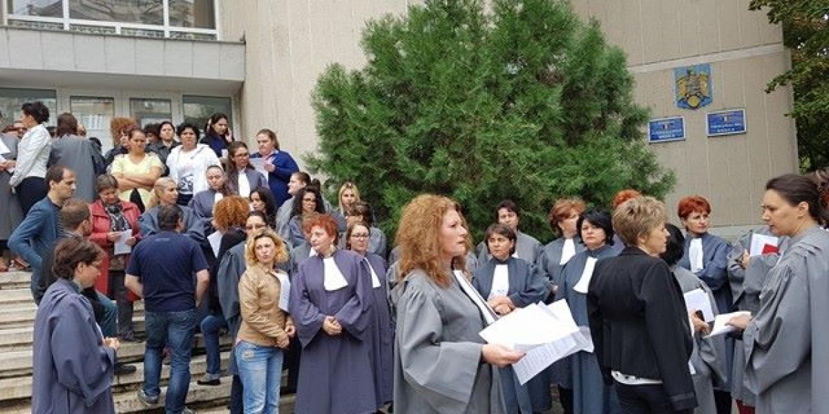 Zeci de angajaţi din Palatul de Justiţie Brăila şi-au întrerupt activitatea şi au protestat ]n faţa clădirii, nemulţumiţi de volumul prea mare de muncă al personalului auxiliar de specialitate, de orele suplimentare neplătite sau de inechităţile salariale existente în rândul acestor categorii de personal.