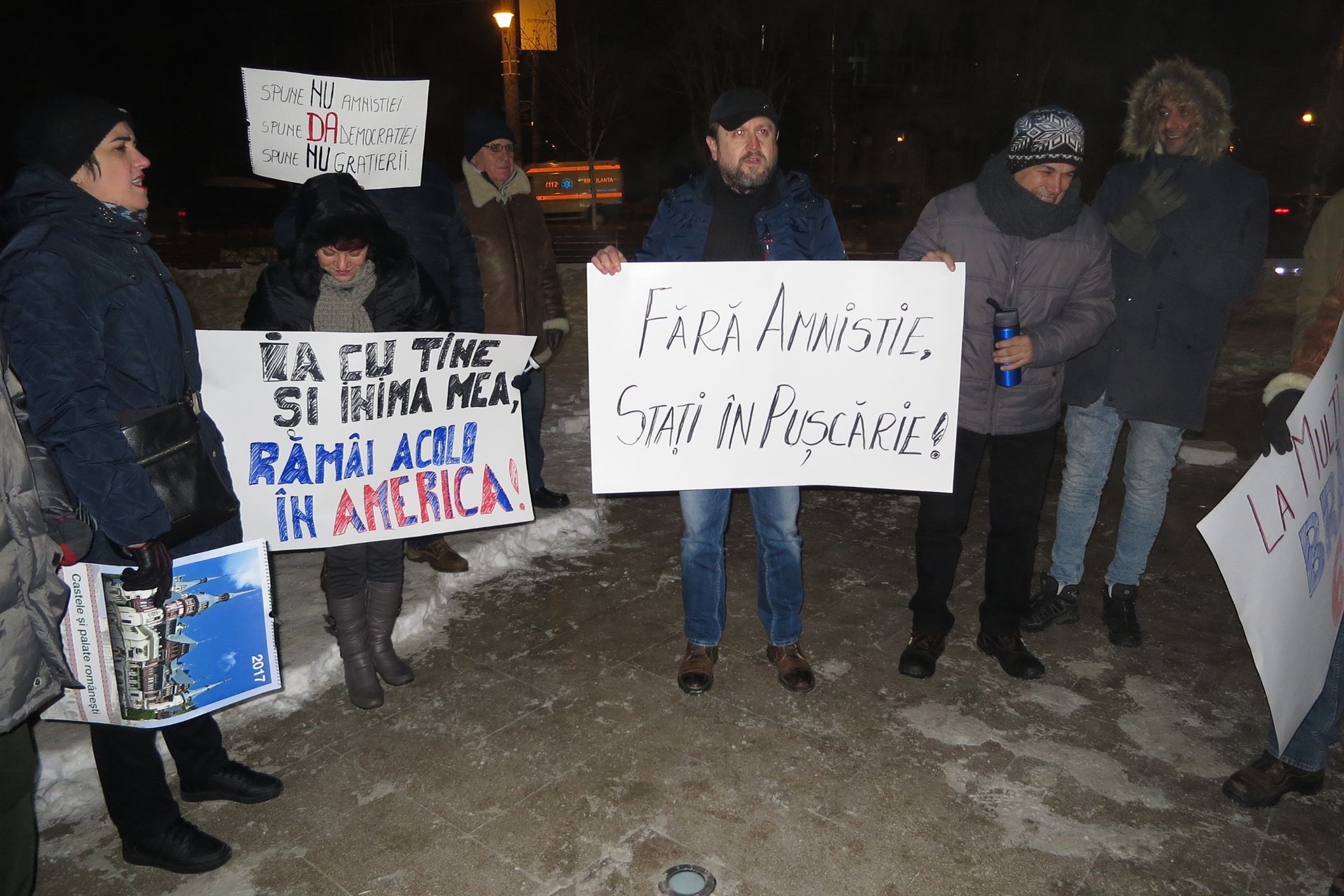 * brăilenii au ieșit în stradă și vineri seară pentru a protesta împotriva Legii amnistiei și grațierii propusă de Guvernul PSD * deși un grup de aproximativ 30 de protestatari se afla la ora 18:00 în fața Palatului Administrativ, aproape de ora 19:00 cei mai mulți au cedat din pricina gerului și au plecat spre casă * în paralel Costel Mărgărit continuă să alerge în jurul Primăriei susținând în continuarea eliminarea majorării taxei de salubritate cu 54%