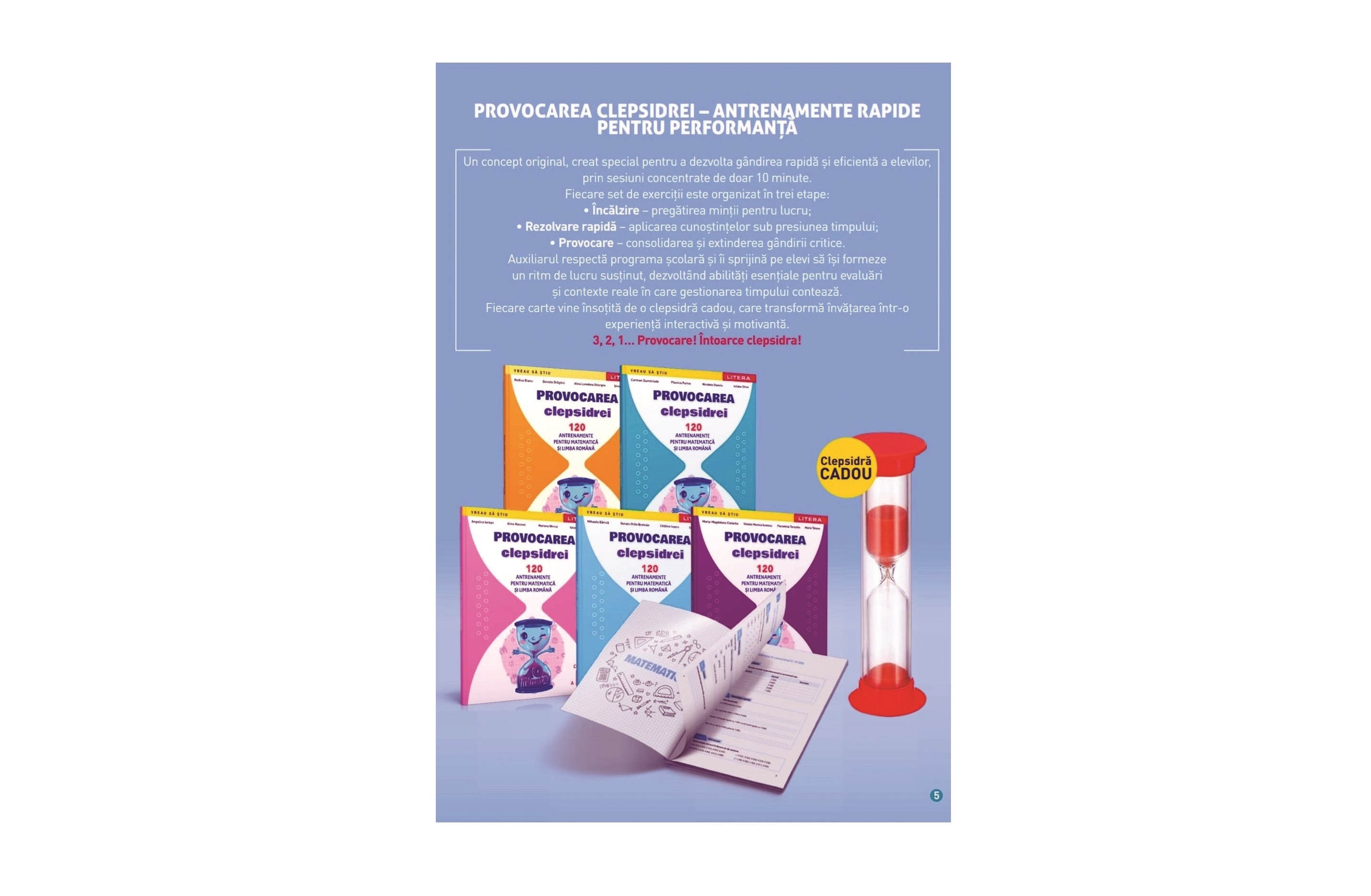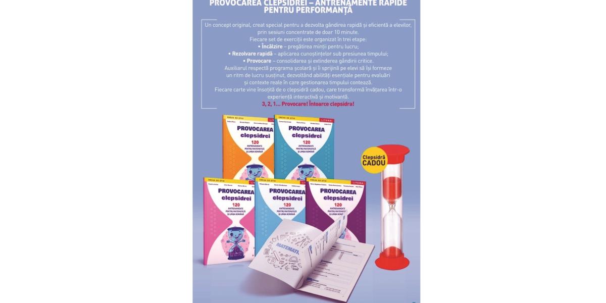 Auxiliarele din colecția ”Provocarea clepsidrei” pot fi consultate pe site-ul Editurii Litera și achiziționate începând cu toamna anului școlar 2025-2026.