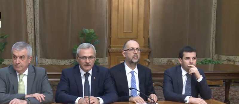 Liderii PSD, ALDE şi UDMR au semnat, miercuri, la Parlament, un protocol de colaborare parlamentară care are ca obiective principale asigurarea stabilităţii politice şi macroeconomice a României şi existenţei unei largi susţineri parlamentare în mandatul 2016 - 2020, precum şi întărirea rolului, prestanţei şi responsabilităţii activităţii Parlamentului, potrivit News.ro.
