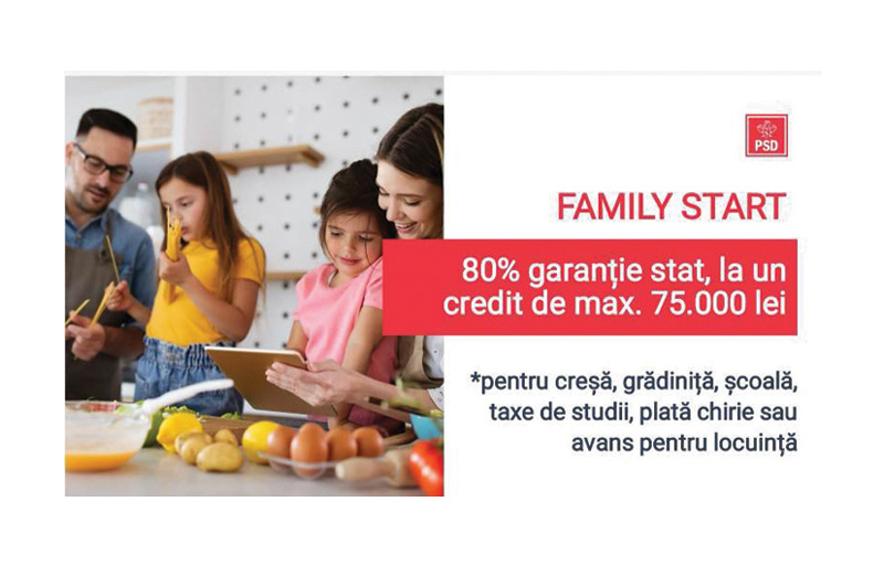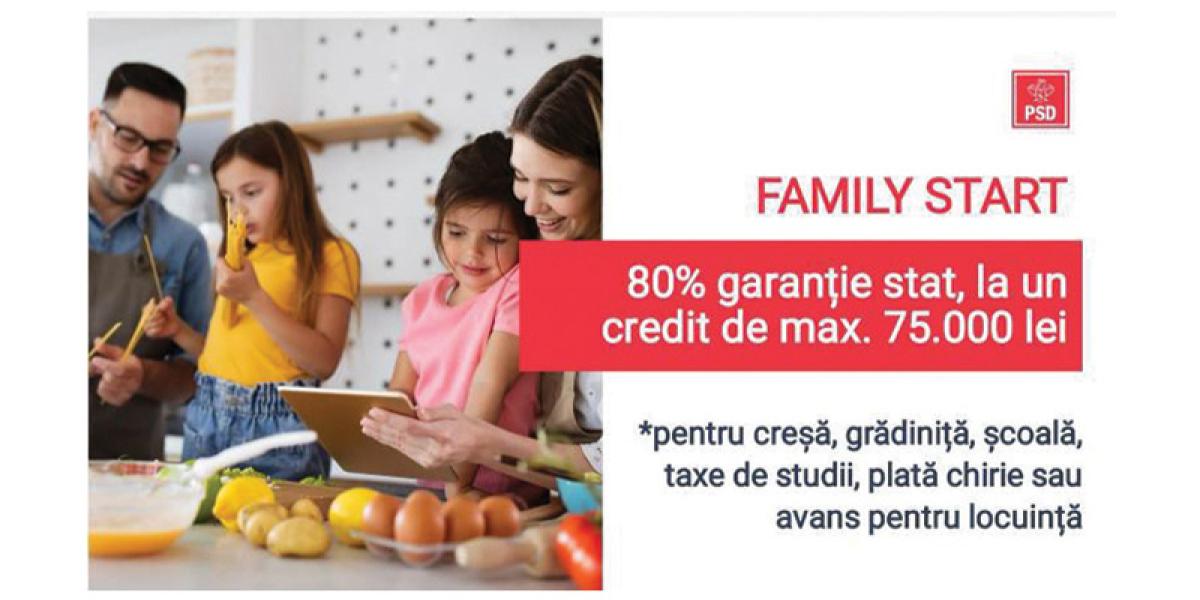 ”Este pentru prima dată când Guvernul intervine pentru a garanta împrumuturile tinerilor. Până acum mulți tineri nu puteau accesa credite din cauza salariilor mici sau a faptului că nu aveau bunuri care să constituie o garanție pentru bancă. Astfel prin programul Family Start tinerii pot obține un credit în valoare de maxim 75.000 de lei, garantat de către stat în proporție de 80% și cu dobândă subvenționată. Suma poate fi rambursată în cel mult 10 ani, cu o perioadă de grație de maxim 5 ani. Banii pot fi folosiți pentru plata cheltuielilor cu creșa, grădinița, școala, after-school, achiziția de autoturisme noi pentru familie, cu 7 locuri, taxe de studii sau activități extrașcolare pentru copii, plata chiriei la locuință, avansul pentru achiziția unei locuințe, cheltuieli legate de cununia religioasă sau civilă etc.”, a explicat Rotaru.