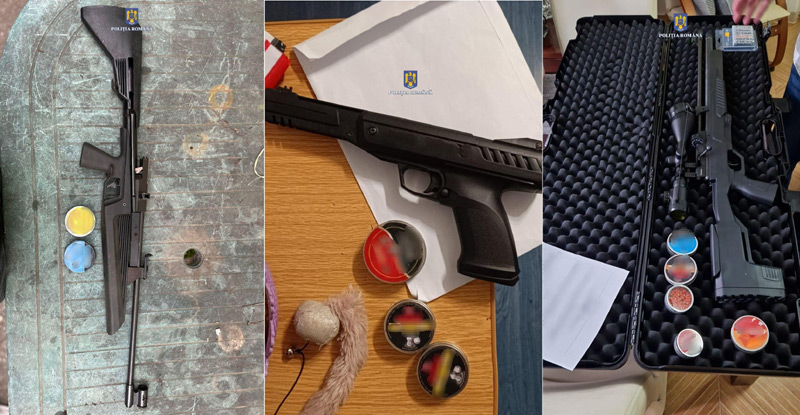 „Astfel, la domiciliul unui bărbat, de 40 de ani, din municipiu, a fost descoperită și ridicată, în vederea continuării cercetărilor, o armă neletală tip pistol de tir sportiv și 515 diablouri. De asemenea, la domiciliile altor doi bărbați, în vârstă de 51 și 72 de ani, ambii din Brăila, au fost descoperite și ridicate două arme neletale de tip pușcă de tir sportiv, 1.320 diablouri, precum și o armă de tip pușcă ce urmează a fi expertizată în vederea stabilirii naturii sale și a categoriei din care face parte”, au precizat polițiștii. Cercetările sunt continuate în cadrul unor dosare penale întocmite sub aspectul săvârșirii infracțiunilor de nerespectarea regimului armelor și munițiilor.