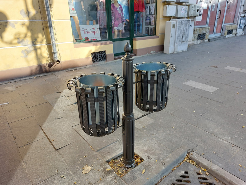 • cea mai veche arteră a orașului va avea 35 de coșuri de gunoi noi, duble, metalice, asemănătoare cu cele înlocuite • alte 30 de coșuri cu picior de fontă vor fi montate în Piața Traian și 10 în Piața Poligon, acestea înlocuindu-le pe cele deteriorate