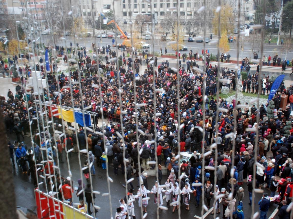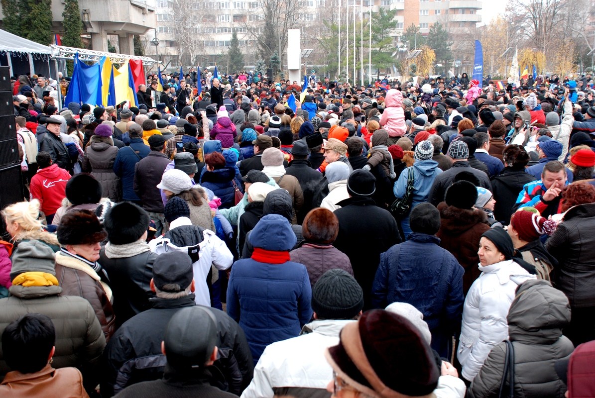 în ciuda vremii mohorâte, mii de oameni au ieşit din case pentru a asista la parada militară, la spectacolul de muzică şi dansuri folclorice şi pentru a vizita târgul de iarnă organizat de Primărie * şi porţiile gratuite au avut succes, dar parcă lumea nu s-a mai înghesuit la fel ca altădată