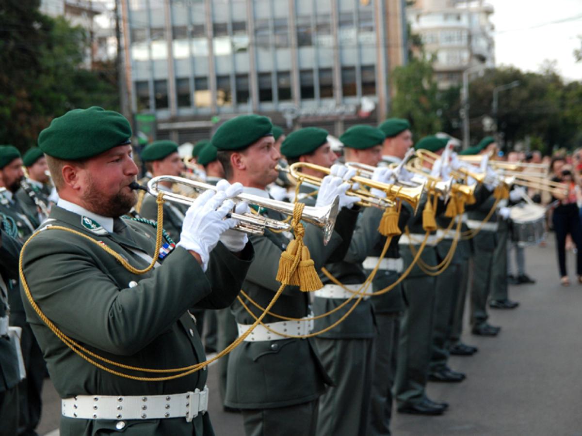 Totul a culminat cu Parada Muzicilor Militare, desfășurată sâmbătă seară, de la ora 18.15, pe Calea Călărașilor. Începând cu Drill Team-ul Brigăzii 30 Gardă „Mihai Viteazul”, comandat de plt. maj. Bogdan Dobre, continuând cu Muzica Militară a Garnizoanei Bytom - Polonia (dirijor cpt. Krystian Siwek) din cadrul Forțelor Aeriene Poloneze (cunoscută sub pseudonimul „uniformele de oțel”), Muzica Militară a Garnizoanei Brăila (dirijor cpt. Raul-Ionuț Badale, manager artistic al Ediției XVI a Festivalului Internațional al Muzicilor Militare) și majoretele Cercului Militar, Muzica Militară a Garnizoanei Täta - Ungaria (dirijor maior Balasz Attila), Muzica Militară a Diviziei 4 Infanterie „Gemina” Cluj-Napoca (dirijor cpt. Daniel Florinel Munteanu) și Ansamblul „Românașul” din același oraș ardelean, Muzica Reprezentativă a Gărzii Naționale a Bulgariei (dirijor lt. col. Radi Radev), Muzica Reprezentativă a Ministerului Apărării Naționale (dirijor col. Marius Șerbănescu), Muzica Militară Reprezentativă a Landului Tyrol - Austria (dirijor col. prof. Hannes Apfolterer), Muzica Militară a Academiei Forțelor Aeriene „Henri Coandă” Brașov (dirijor cpt. Ionuț Valentin Vizireanu) și terminând cu Muzica Militară a Forțelor Navale ale Turciei (dirijor cpt. Bulent Yuksel), cei 400 de participanți la paradă au mărșăluit pe Calea Călărașilor, pe traseul Barieră - Piața Independenței, încadrați de jandarmi și polițiști locali.
