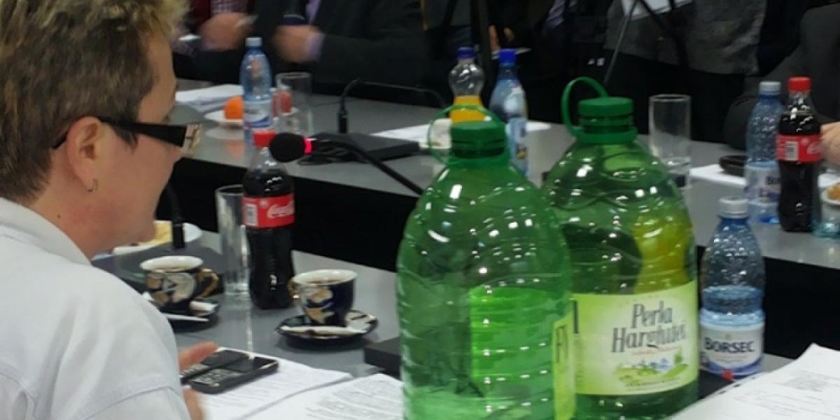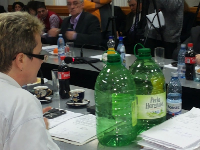 Consilierii municipali nu vor uita prea curând şedinţa de ieri, când s-au trezit pe cap cu un grup de 20 de locatari din blocurile lăsate fără apă la începutul acestei săptămâni. Pe bună dreptate, brăilenii revoltaţi au venit la şedinţa publică pentru a aduce în discuţie subiectul fierbinte al debranşării, dorind să atragă atenţia asupra nedreptăţii comise în cazul proprietarilor de apartamente care nu au datorii la întreţinere. Pentru că regula şedinţelor CLM spune că invitaţii nu pot decât să asiste la lucrările plenului şi nu pot avea intervenţii, independenta Simona Drăghincescu a fost cea care s-a transformat în purtătorul de cuvânt al celor nemulţumiţi, explicând că oamenii au contactat-o încă de miercuri noapte, cerându-i ajutorul. "Probabil că mulţi dintre dumneavoastră v-aţi întrebat de ce este aşa de multă lume astăzi în sală la noi, la şedinţă. Sunt cetăţeni care au apa oprită, de la Asociaţia de Proprietari numărul 46 (este vorba de blocul 12 din Viziru1 - n.r.). Domnul primar m-a chemat, mi-a dat o situaţie cum că astăzi (ieri - n.r.) la ora 12:00, în urma încasărilor făcute, se va da drumul la apă la asociaţia respectivă. (...) Nu numai această asociaţie are probleme, sunt multe, vă spun. Din octombrie 2012 am cerut printr-o propunere la CLM ca să contorizăm apa în exterior, la limita proprietăţii, deoarece sunt foarte mari probleme cu acest serviciu din cauza neplăţii. Mai mult, am avertizat că există riscul să ajungă CUP «Dunărea» în aceeaşi situaţie ca şi CET-ul", şi-a început pledoaria consilierul. Mai departe, într-un gest sugestiv, Simona Drăghincescu a scos de sub birou două bidoane goale, spunând că a venit să ceară apă, precum cetăţenii debranşaţi.