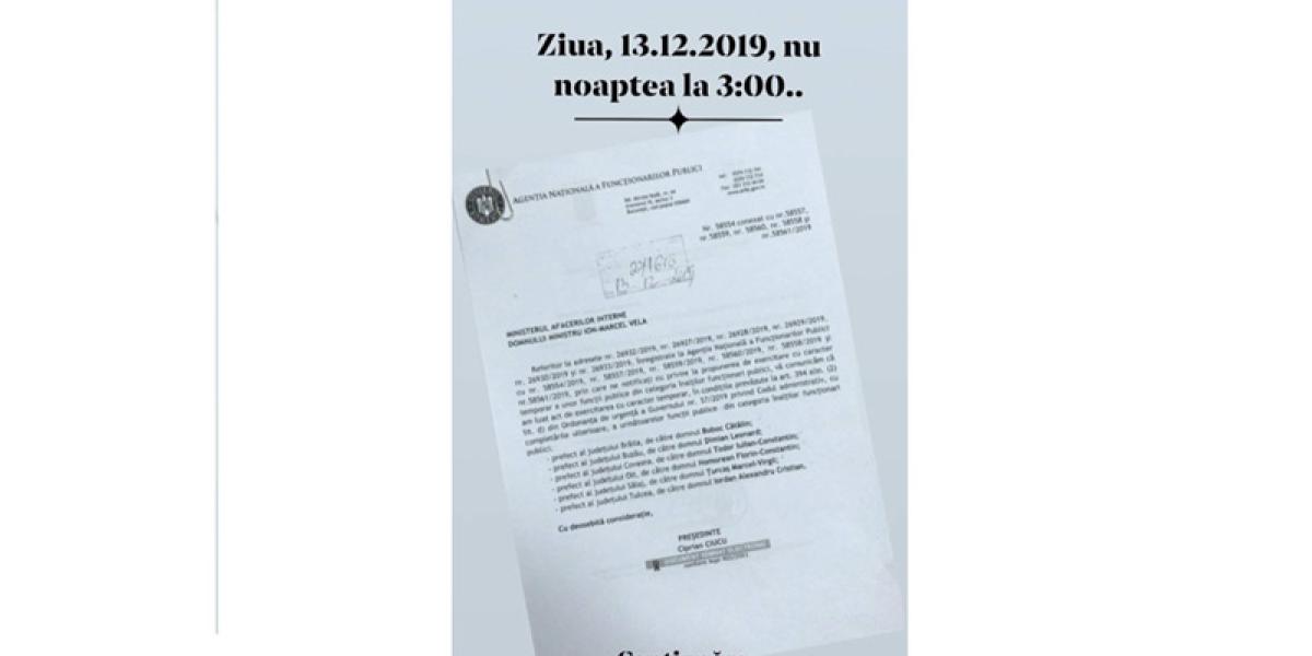 Iată răspunsul comunicat de ANFP redactorilor noştri: “Conform dispoziţiilor art. 509 alin (3), teza I din Ordonanţa de urgenţă a Guvernului nr. 57/2019 privind Codul Administrativ, cu completările ulterioare, în mod excepţional, la propunerea justificată a conducătorului autorităţii sau instituţiei publice în al cărei stat de funcţii există funcţia publică corespunzătoare categoriei înalţilor funcţionari publici vacantă sau temporar vacantă, exercitarea cu caracter temporar a acesteia poate fi realizată de funcţionari publici sau, după caz, de funcţionari publici cu statul special care îndeplinesc condiţiile prevăzute la alin. (2) cu notificare prealabilă a Agenţiei Naţionale a Funcţionarilor Publici, cu 10 zile înainte de dispunerea măsurii. Din analiza textului de lege, rezultă că Agenţia Naţională a Funcţionarilor Publici nu emite aviz favorabil sau nefavorabil în ceea ce priveşte exercitarea cu caracter temporar a unei funcţii publice corespunzătoare categoriei înalţilor funcţionari publici. (…) Raportat la dispoziţiile art. 394 alin (2) coroborat cu prevederile art. 251 alin (2) din Ordonanţa de Urgenţă a Guvernului nr. 57/2019 privind Codul Administrativ, cu completările ulterioare, măsura exercitării cu caracter temporar a funcţiei publice din categoria înalţilor funcţionari publici de prefect şi subprefect se dispune de Guvernul României, la propunerea ministrului care coordonează instituţia prefectului”.