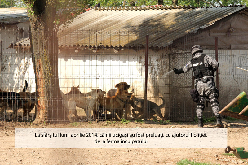 La datele de 15.05.2014, respectiv 28.05.2014 au fost efectuate percheziții la sediul fermei administrate de inculpat, ocazie cu care au fost capturate 23 de exemplare de câini de mari dimensiuni, în principal metis de ciobănesc german, care au fost predați unor unități de ecarisaj. La percheziția din 30.04.2014 au fost descoperite 8 cadavre porcine dintre care unul adult, mâncat parțial - împrejurare ce probează că membrii haitei aveau creat reflexul de a consuma carne crudă. Acest aspect a fost confirmat de altfel şi de un martor.