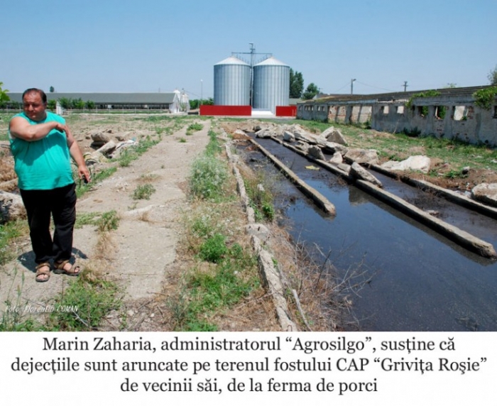 "De aproximativ 7 ani, la foarte mică distanţă, 120 metri de ultima casă a oraşului Însurăţei, deci practic în intravilanul localităţii, respectiv la 38 metri de punctul de lucru al societăţii pe care o administrez, a luat fiinţă un adăpost pentru suine. Odată cu începerea activităţii, locuitorii oraşului au constatat că dinspre acesta vine un miros insuportabil de dejecţii suine. Situaţia se acutizează pe perioada anotimpului cald, dar mirosul este constant pe tot parcursul anului şi este atât de deranjant, încât oamenii nu mai pot sta în propriile curţi, fiind forţaţi să ţină uşile şi ferestrele caselor închise. Această stare de fapt a culminat în urmă cu aproximativ 3 săptămâni, când complexul de suine a început să deverseze dejecţiile de porci în fosele septice ale fostelor grajduri ale CAP Griviţa Roşie, aflate în imediata vecinătate a complexului şi a punctului de lucru al societăţii mele", se afirmă în plângerea semnată de Marin Zaharia, administratorul fermei "Agrosilgo" SRL. La rândul său, Ionuţ Lungu, medic veterinar şi consilier local în oraşul Însurăţei, acuză ferma de porci că, încă de la înfiinţare, şi-a obţinut fraudulos autorizaţia de funcţionare. "Ei au susţinut că ferma se află la 500 de metri de localitate, însă distanţa până la ultima casă este de doar 120 metri, măsurată de noi cu exactitate. Autorizaţia s-a obţinut, deci, în urma unui fals. Acest aspect este cu atât mai grav cu cât investiţia s-a făcut cu fonduri europene. Vom sesiza inclusiv Oficiul European de Luptă Anti-Fraudă de la Bruxelles", spune consilierul local Ionuţ Lungu. Acesta mai acuză ferma de porci că nu a respectat câteva măsuri stabilite, în urmă cu 6 ani, de autorităţile de mediu, pentru reducerea mirosului de dejecţii. "Problema cu mirosul a existat încă de la începutul funcţionării acestei societăţi. La vremea respectivă am strâns câteva sute de semnături de la locatarii nemulţumiţi şi am sesizat organele abilitate. Cei de la Mediu i-au somat pe proprietarii crescătoriei să înfiinţeze perdele forestiere de salcâmi, pe o lăţime de minim 15 metri, în jurul perimetrului unde se află halele de porci şi să pună filtre performante. Aceste cerinţe nu au fost respectate. Aşa-numita perdea de salcâmi constă, de fapt, în câţiva copaci plantaţi la câţiva metri unul de altul, iar în loc de filtre performante au montat pe gurile de aerisire nişte tuburi de plastic improvizate", ne-a declarat medicul veterinar Ionuţ Lungu.