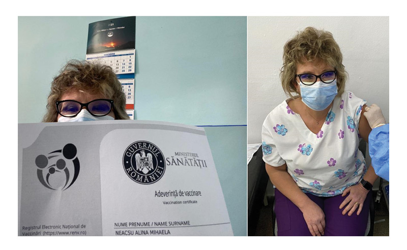 “Sunt extrem de fericită! Am așteptat momentul acesta de aproximativ un an! M-am vaccinat pentru că sunt mamă, sunt doctor, și am o datorie morală față de familia mea și față de pacienții mei. Nu trebuie să-i dezamăgesc și trebuie să fiu sănătoasă ca să îi pot trata. A durat câteva minute vaccinarea, fără niciun fel de durere. Recomand tuturor pacienților mei și tuturor cunoștințelor și tuturor oamenilor care mă cunosc să aibă încredere pentru că, personal, consider că este unica soluție de a lupta contra acestei boli. Pot să vă spun că ne-am vaccinat foarte mulți colegi medici. Noi, cei de la Oftalmologie, am fost în echipă cu Anestezia-Terapia Intensivă și suntem extrem de entuziaști și ne-am dorit extrem de mult să ne vaccinăm pentru că, doctori fiind, noi considerăm că este una din soluțiile de a nu ne îmbolnăvi și de a nu îmbolnăvi pe alții. Esența ortodoxismului este «faci bine ție și aproapelui tău». Va fi un rapel peste 21 de zile, vom fi anunțați, pentru că toate datele noastre sunt trecute în platforma corespunzătore, și ne vom prezenta la raport. Asta nu înseamnă că dacă ne-am vaccinat vom elimina măsurile de protecție. Le vom păstra, ne vom proteja ca și înainte, dar vaccinul este un plus. E primul moment în anul acesta când sunt optimistă, când văd o speranță”, ne-a declarat dr. Alina Neacșu.