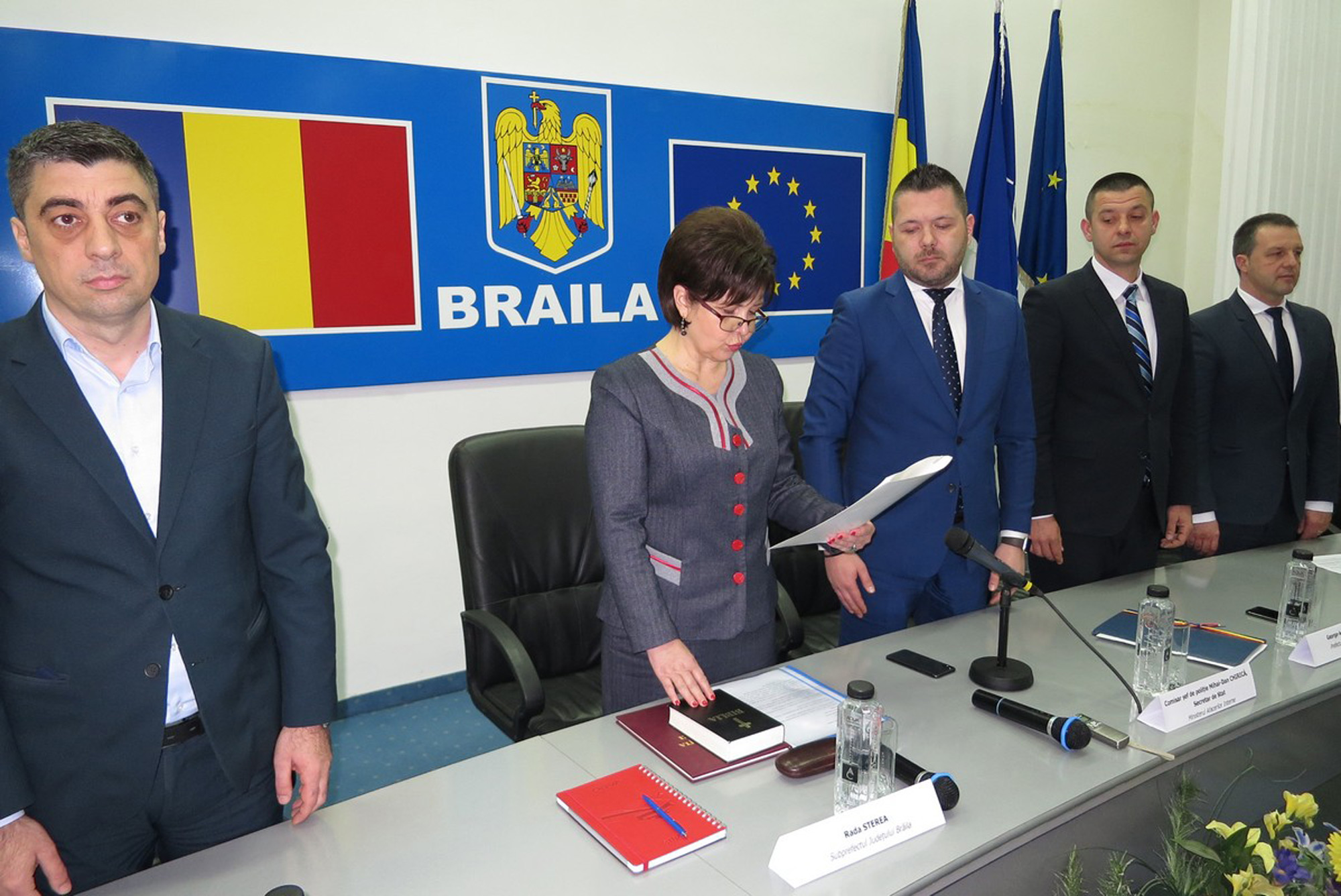 “Eu, Sterea Rada, numită în funcţia publică de subprefect al Judeţului Brăila, prin hotărârea Guvernului nr. 103/2018, depun următorul jurământ de credinţă în conformitate cu dispoziţiile articolului 62, alin.6 al Legii 188/1999 privind statutul funcţionarilor publici, republicată cu modificările şi completările ulterioare: Jur să respect Constituţia, drepturile şi libertăţile fundamentale ale omului, să aplic în mod corect şi fără părtinire legile ţării, să îndeplinesc conştiincios îndatoririle ce îmi revin în funcţia publică în care am fost numită, să păstrez secretul profesional şi să respect normele de conduită profesională şi civică. Aşa să îmi ajute Dumnezeu!”, a jurat Sterea.