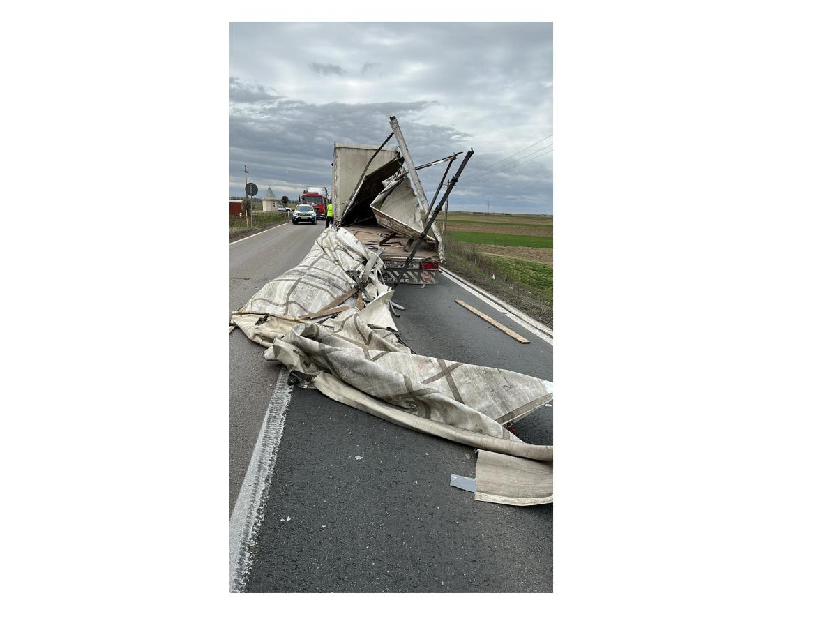 Pe fondul vântului puternic, s-ar fi dezintegrat remorca unui autocamion