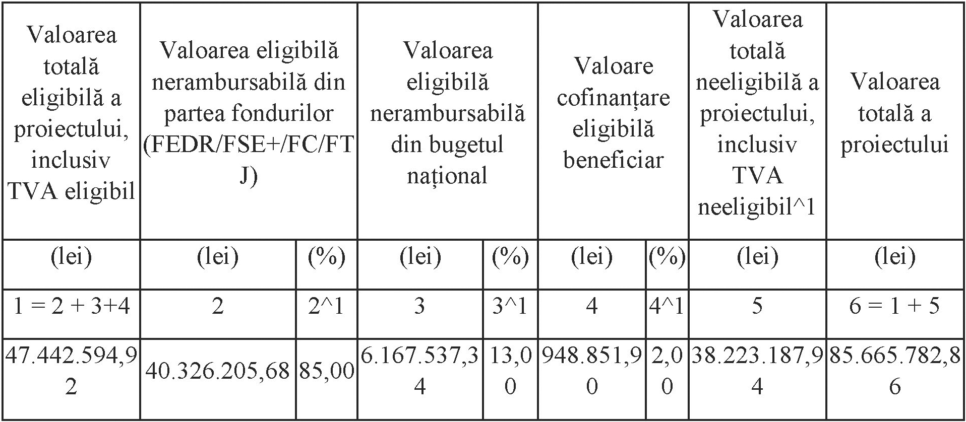 PR SE 2021-2027 acordă o finanţare nerambursabilă în sumă maximă de 46.493.743,02 lei, reprezentand 98% din valoarea totală eligibilă.