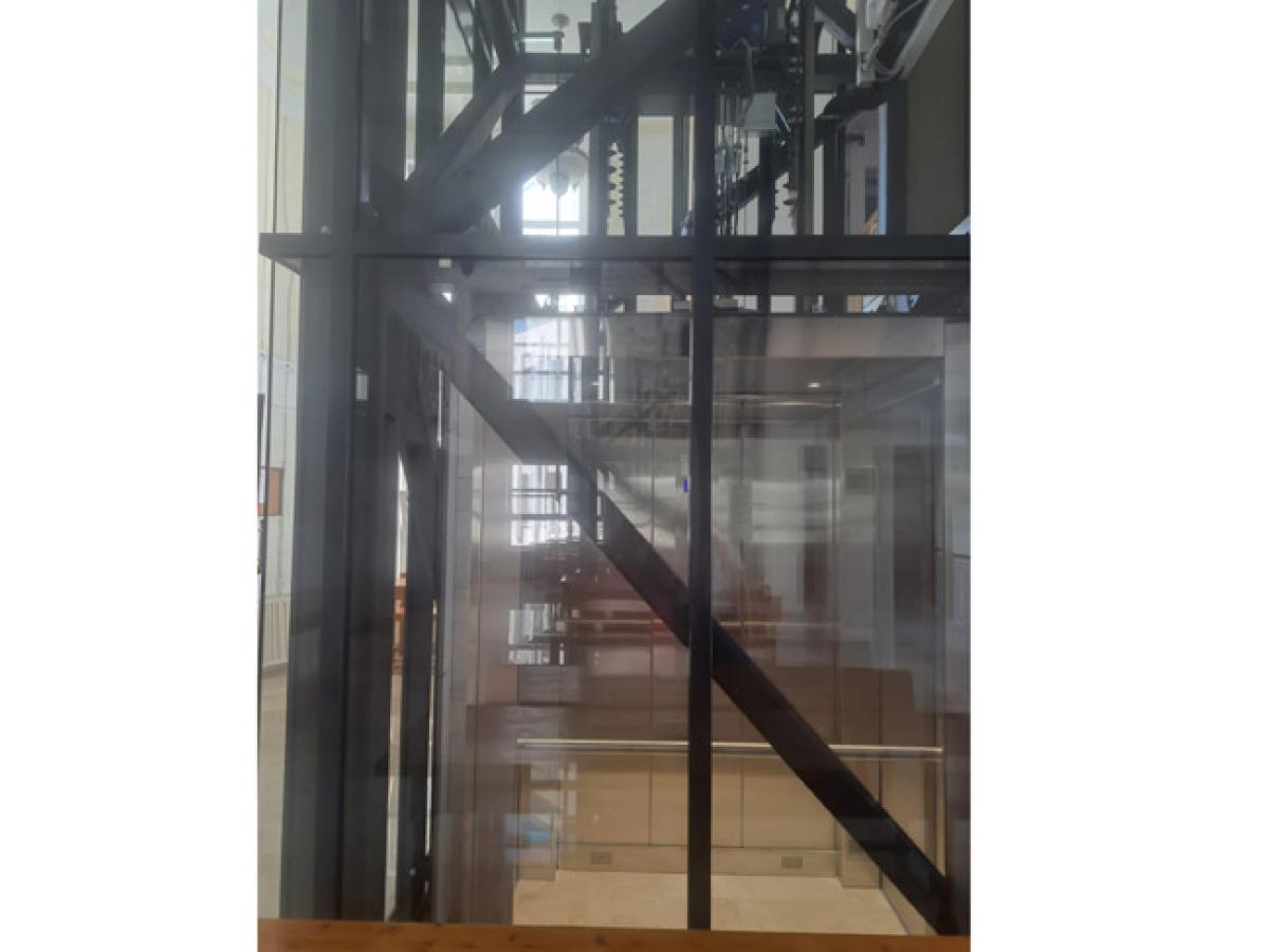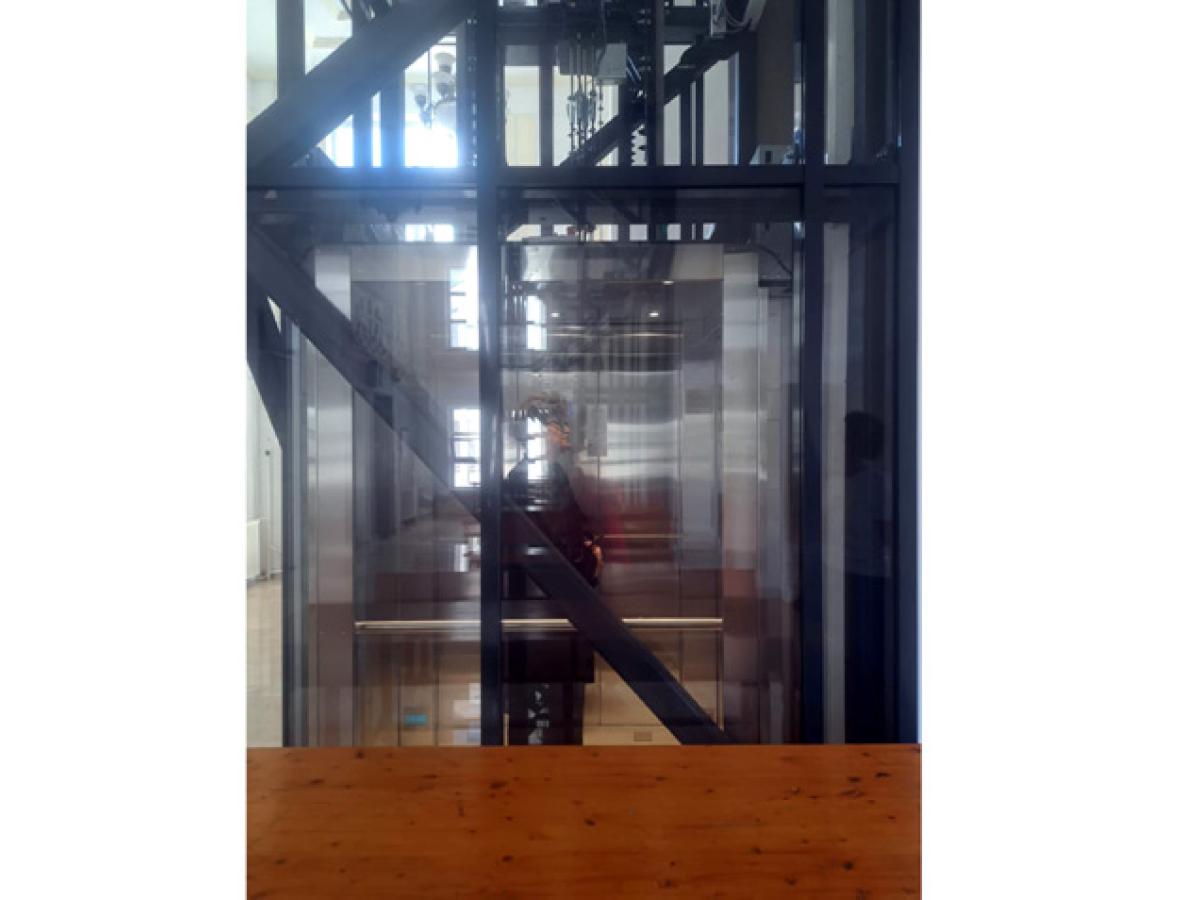 Cele două ascensoare au un design modern, din sticlă și metal și funcționează într-un corp din sticlă securizată, care asigură pătrunderea luminii naturale în holul principal al Palatului”, a explicat președintele CA Galați.